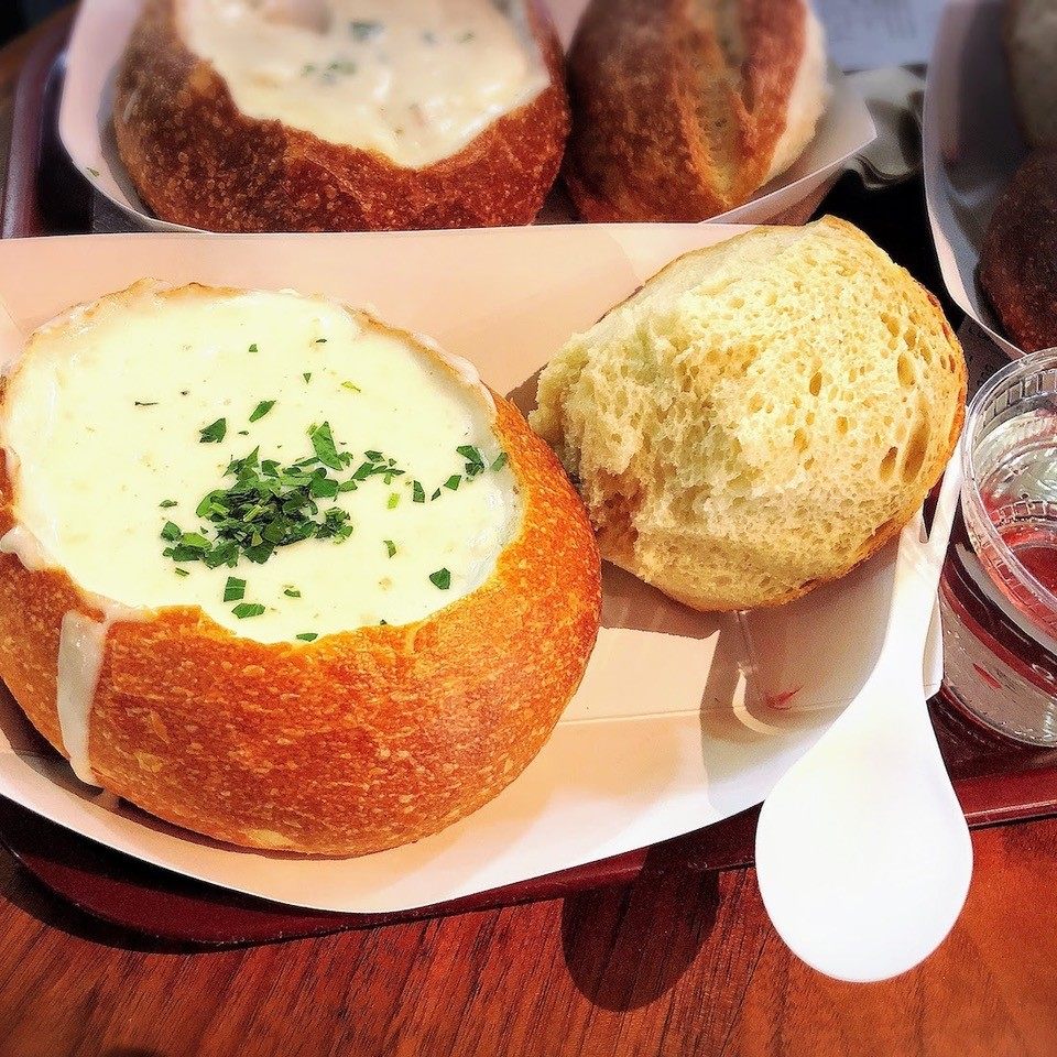 例えばサンフランシスコでは、サワードウと呼ばれる天然酵母を使った酸味のある丸いパンをボウルにしたクラムチャウダーが王道。サンフランシスコの風土を活かして天然発酵させたサワードウパンは独特な酸味があり、コクのあるチャウダーの組み合わせも絶品! まさにここでしか味わえないご当地グルメです。