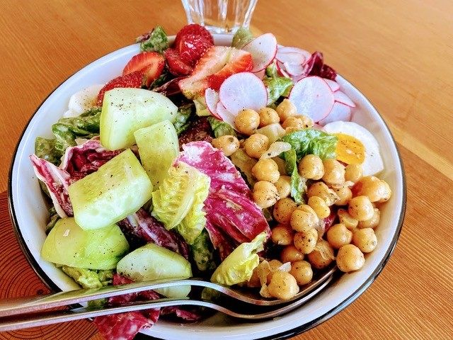 近年のコブサラダには、サラダ菜とともにキヌアやひよこ豆などが入ったヘルシーなタイプが増えており、細かく切ったアボカド、卵、ターキー(七面鳥の肉)、レタス、トマト、ブルーチーズなどのいろんな具材の味わいを楽しめます。特に新鮮な地元の野菜を使ったカリフォルニアのサラダは格別の味。西海岸を旅行の際にぜひ食べてみてくださいね!