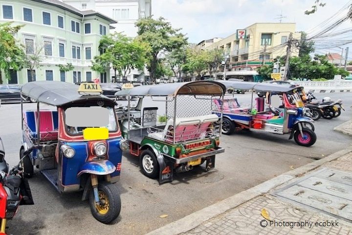 通常の車タイプのタクシーは、ドアをロックされてしまうと自分では扉を開けられませんが、観光地でよく目にする「トゥクトゥク」や日系製品を取り扱うフジスーパー前などに停車している「シーロー」には扉がないぶん、“密室ではない”という点では比較的安心できます。通常のタクシーに比べるとスピードも出ませんし、1、2駅くらいの距離しか走ってもらえませんが、筆者もフジスーパーでたくさん買い物をした帰りにはシーローの荷台にひとりで乗っています。