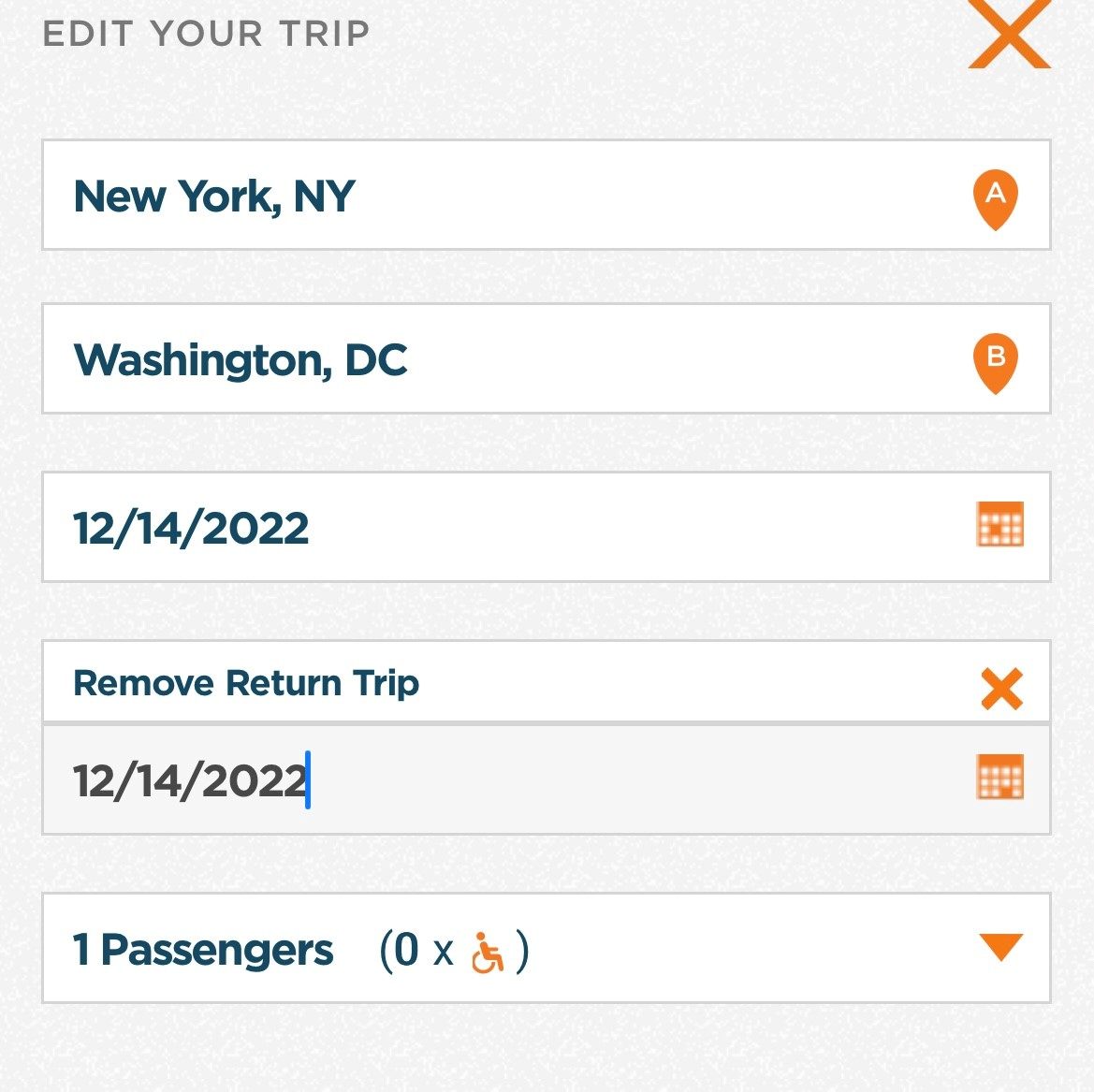 ①サイト内の「予約する(BOOK A TRIP, PCサイトはBOOK NOW)」から、出発する都市と到着都市、出発日、到着日、人数を選ぶ