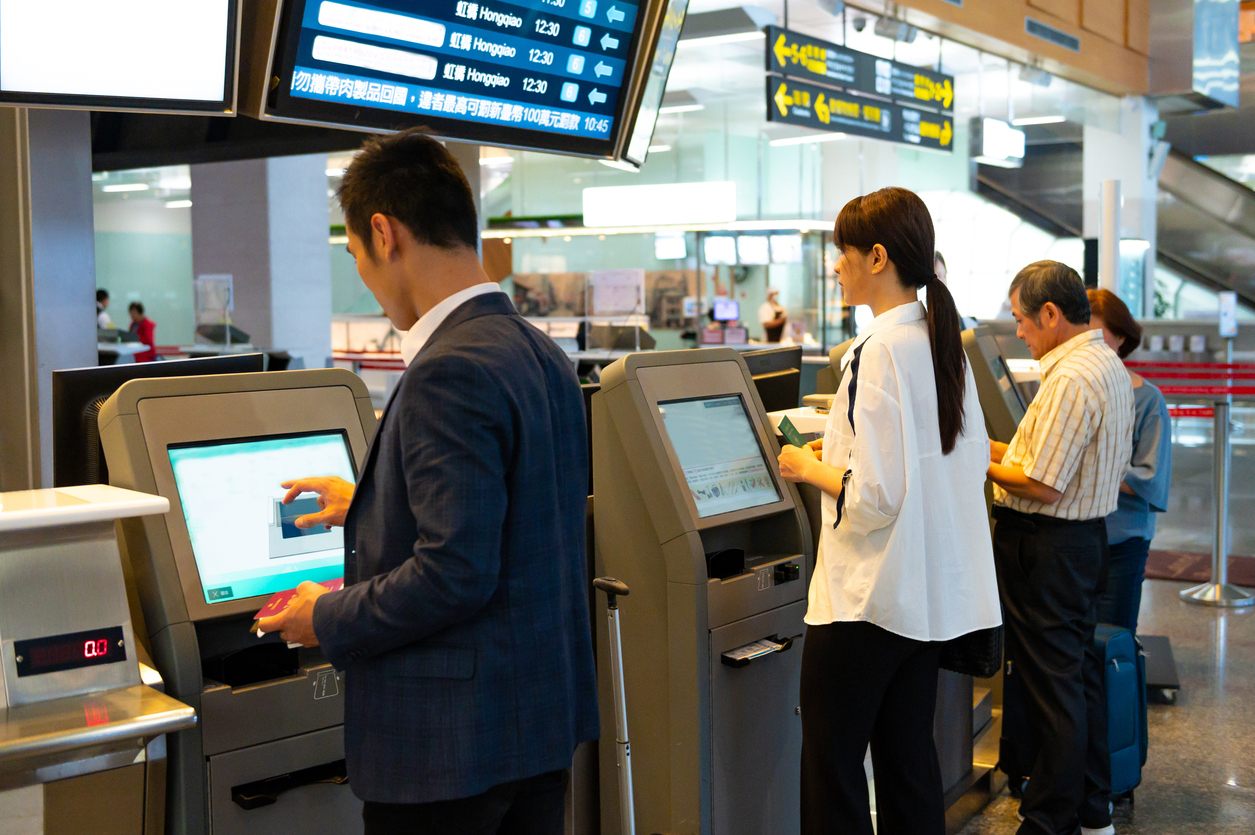 1) いずれかの方法で空港に着いたら、まずは預入れ荷物を預けチェックインしましょう。搭乗する航空会社のカウンターの手前で機内に預けるバッグをX線検査機に通します。検査済みのバッグにはシールが貼られ、チェック後は開けることはできません。(機内預け荷物がない場合はチェックの必要はありません)