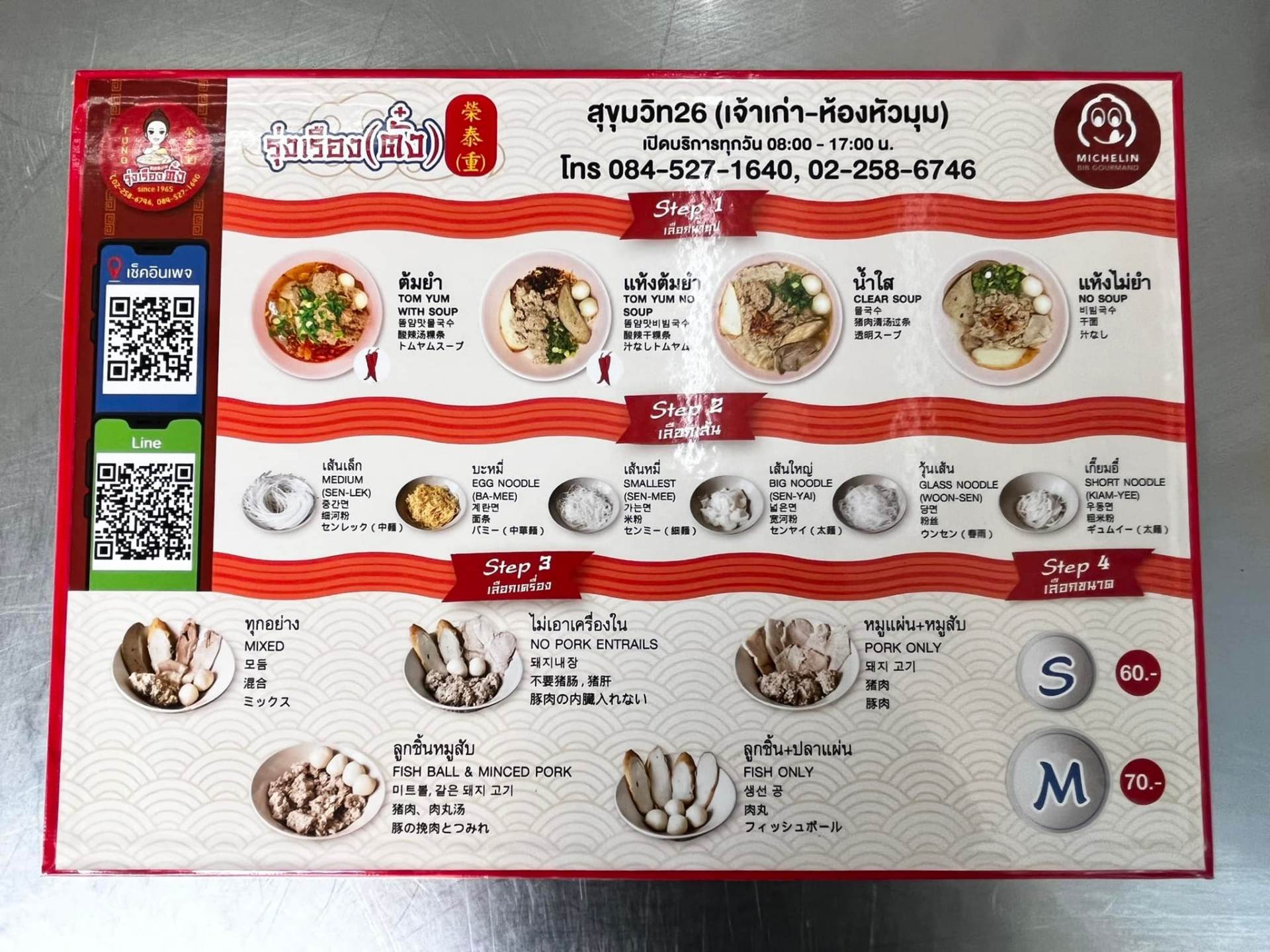 バンコクで最も有名なクイッティアオ専門店が、BTSプロムポン駅前にある「ルンルアン」。約70年の歴史をもつ老舗で、5年連続でミシュランのビブグルマンに選出されている名店です。メニューには日本語の表記があるので安心して注文できます。