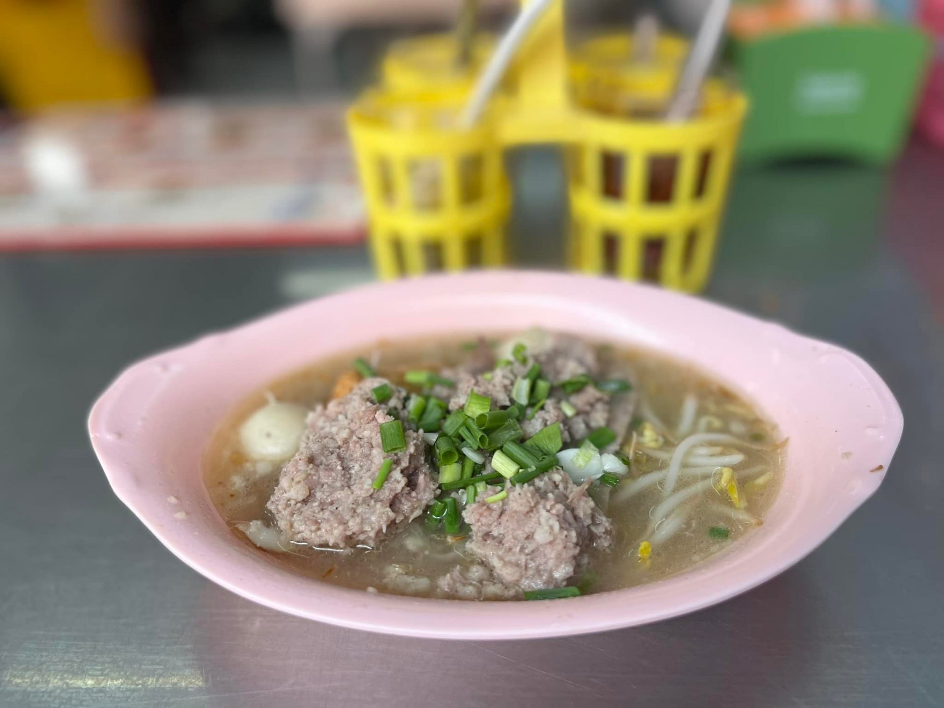スープはトムヤム味と透明スープの2種類あり、それぞれ汁ありか汁なしを選ぶこともできます。麺は6種類、具材は5種類、サイズはSとMがあります。筆者が選んだのは透明スープ、センレック、具材ミックスの組み合わせ(60バーツ、約230円)。豚ひき肉やフィッシュボール、モヤシ、ネギなど具だくさんです。透明な豚骨ダシのスープはうま味たっぷりでコクがあります。