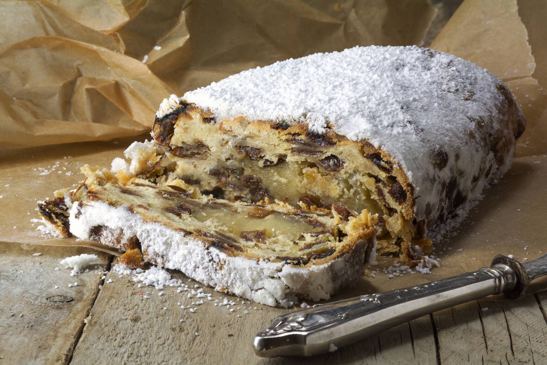 ドイツで古くから親しまれているシュトレンは、バターをふんだんに練り込んだ発酵生地にマジパンや洋酒につけたドライフルーツ、アーモンドなどのナッツが入った菓子パン。どっしりとした食感が特徴で、表面には粉砂糖がたっぷりと振りかけられています。日持ちするうえ、熟成が進むことで風味・味わいが少しずつ変わっていくため、ドイツではアドベント期間中、毎日少しずつスライスして食べながらクリスマスの到来を待ちわびます。