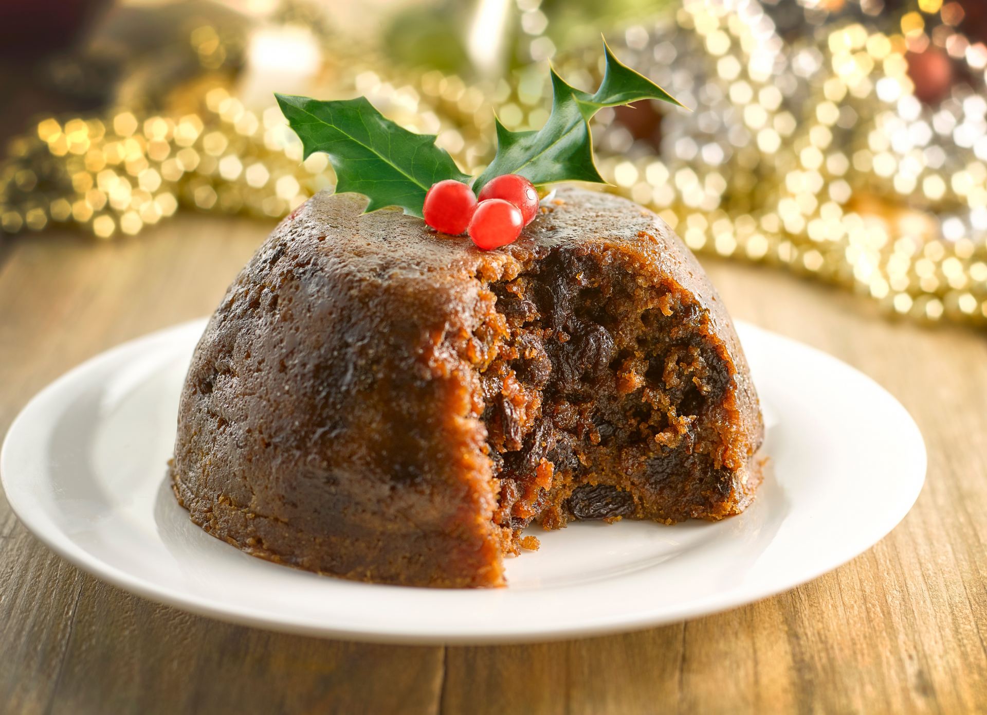 イギリスでクリスマスディナーを締めくくるデザートとして欠かせないのが、クリスマス・プディング。パン粉、牛(羊)脂、卵、糖蜜にブランデーに漬けたドライフルーツやナッツをたっぷりと混ぜ、スパイス、柑橘類の皮、黒ビールやラム酒などを加えてじっくり蒸したお菓子で、食べ応えのある甘くて濃厚な味わいが特徴。現地では、食べる前にプディング全体に少し温めたブランデーをかけ、火をともしてから食べるのが昔ながらの慣習です。
