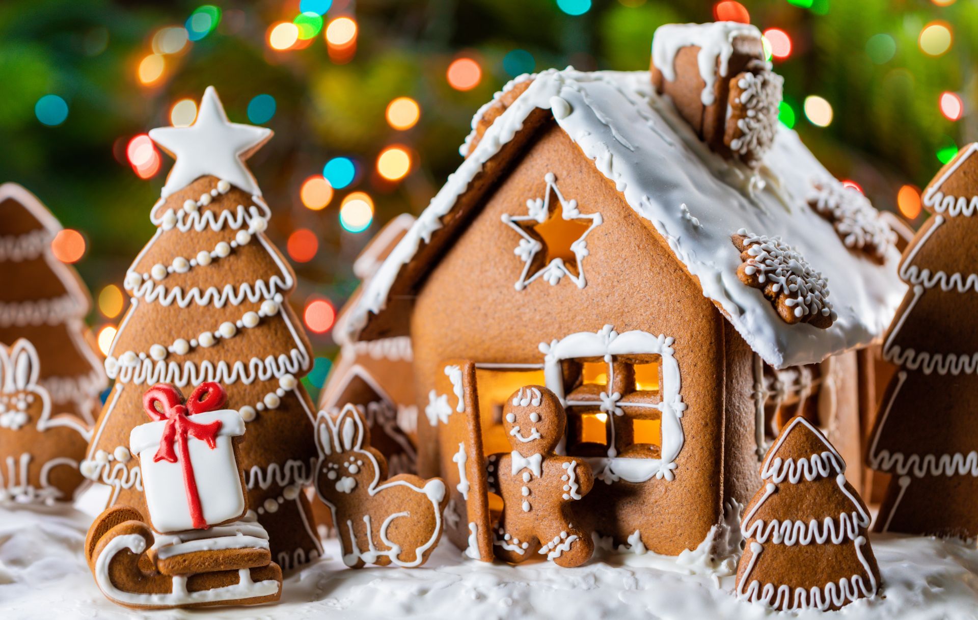 ドイツ語圏ではレープクーヘンハウス、英語圏ではジンジャーブレッドハウスとも呼ばれるように、お菓子の家の土台となっているのはクリスマスシーズンによく食べられるレープクーヘン(ドライフルーツ、ナッツ、スパイスで作るドイツのクッキー)やジンジャーブレッド(ジンジャー入りのクッキー)。表面にはアイシングなどが施され、チョコレートやキャンディ、グミなど、さまざまなお菓子がパーツとなって屋根や窓などを作り出しています。