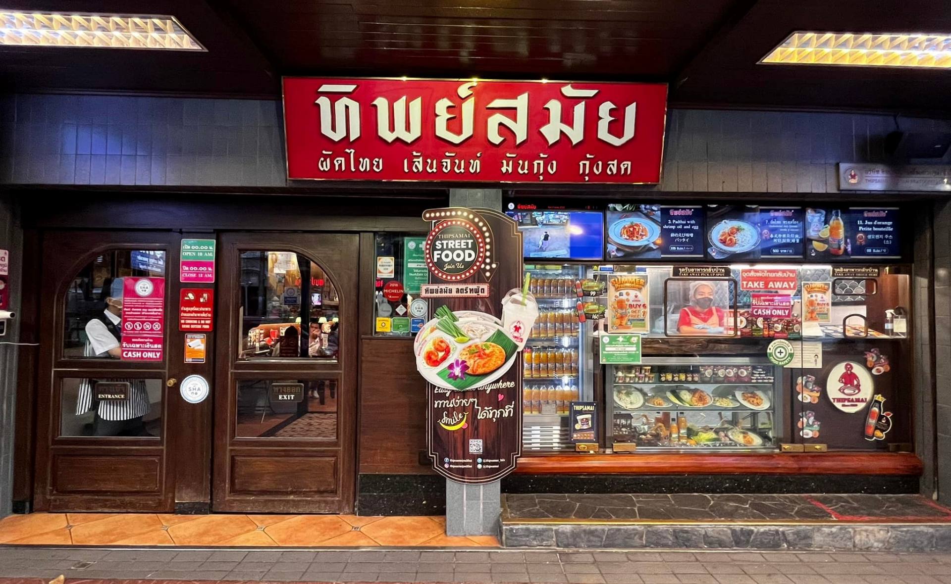 パッタイ専門店「ティップサマイ」は1966年創業の老舗で、ミシュランガイドのビブグルマンにも選出されたことがある名店です。ここで紹介するのは旧市街の本店ですが、バンコクの有名ショッピングモールにも数店舗出店しています。