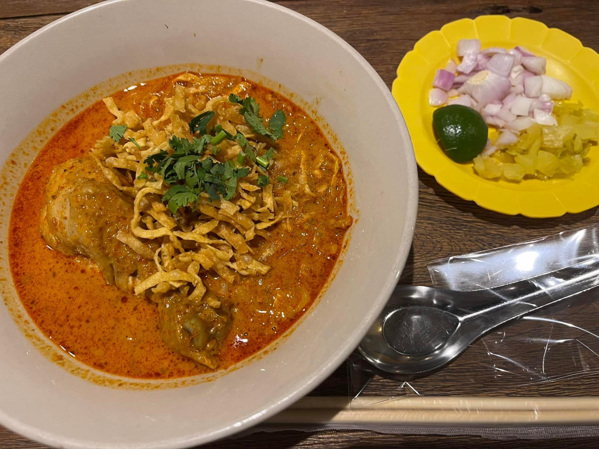 「カオソーイ」は濃厚なカレースープが特徴の “揚げカレーラーメン” です。ミャンマーからラオス経由でタイ北部に伝わり、タイ風にアレンジされて広く食されるようになりました。