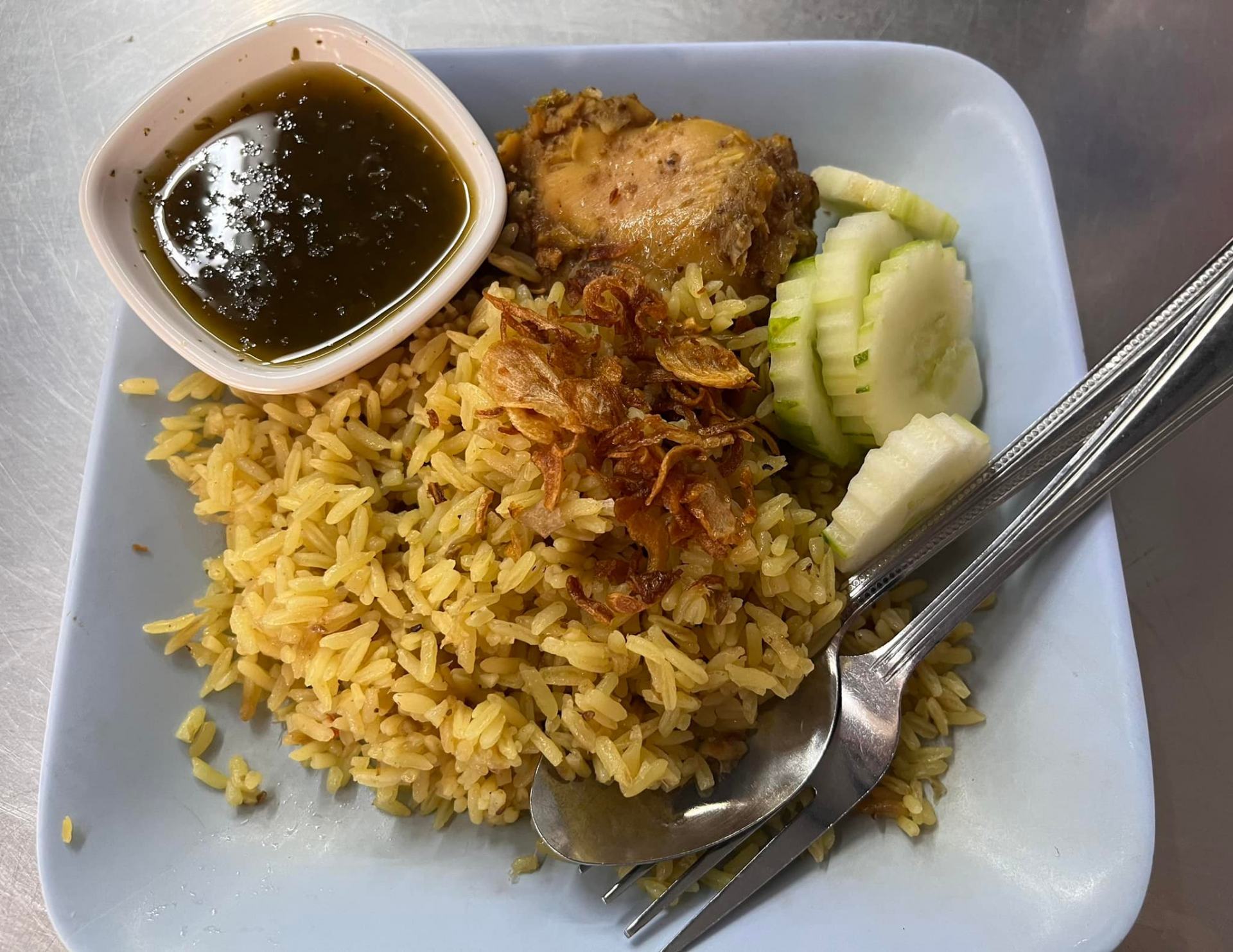 南部料理の代表格である「カオモッガイ」は “タイ風チキンビリヤニ” です。パラパラの炊き込みご飯と蒸し鶏を組み合わせたもので、辛くない南部料理のひとつ。かつてタイ南部地方のイスラム系住民が食べていた料理が、タイ全土に広まりました。
