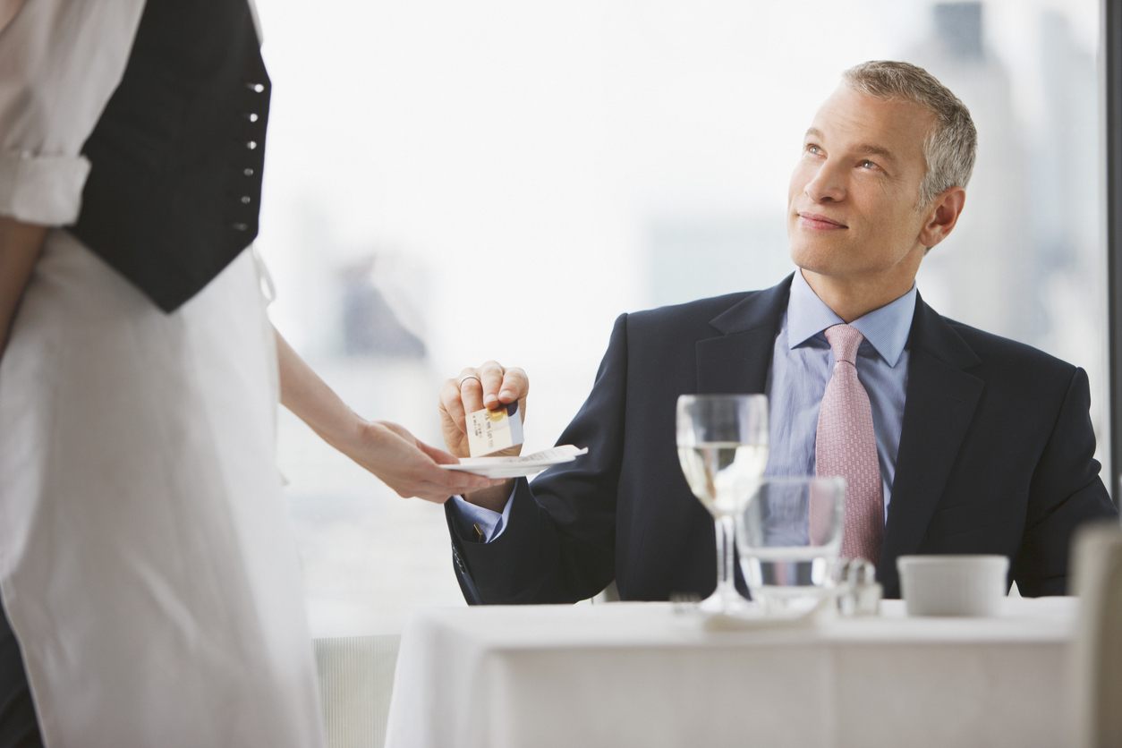 基本的には着席したまま勘定を頼み、支払うときも席についたままで大丈夫です。頭を悩ますのがチップですが、レシートにサービス料が含まれていないかを確認すること。(特にアメリカは予めレシートにサービス料があるので、二重払いになってしまいます)後はその国の事情に応じてチップを置く。なお、クレジットカードを使用する場合、カード伝票の所定欄にチップ額(tipまたは、gratuityと記されている)を記入することも可能です。チップについてはこちらのページで詳しく紹介しています。