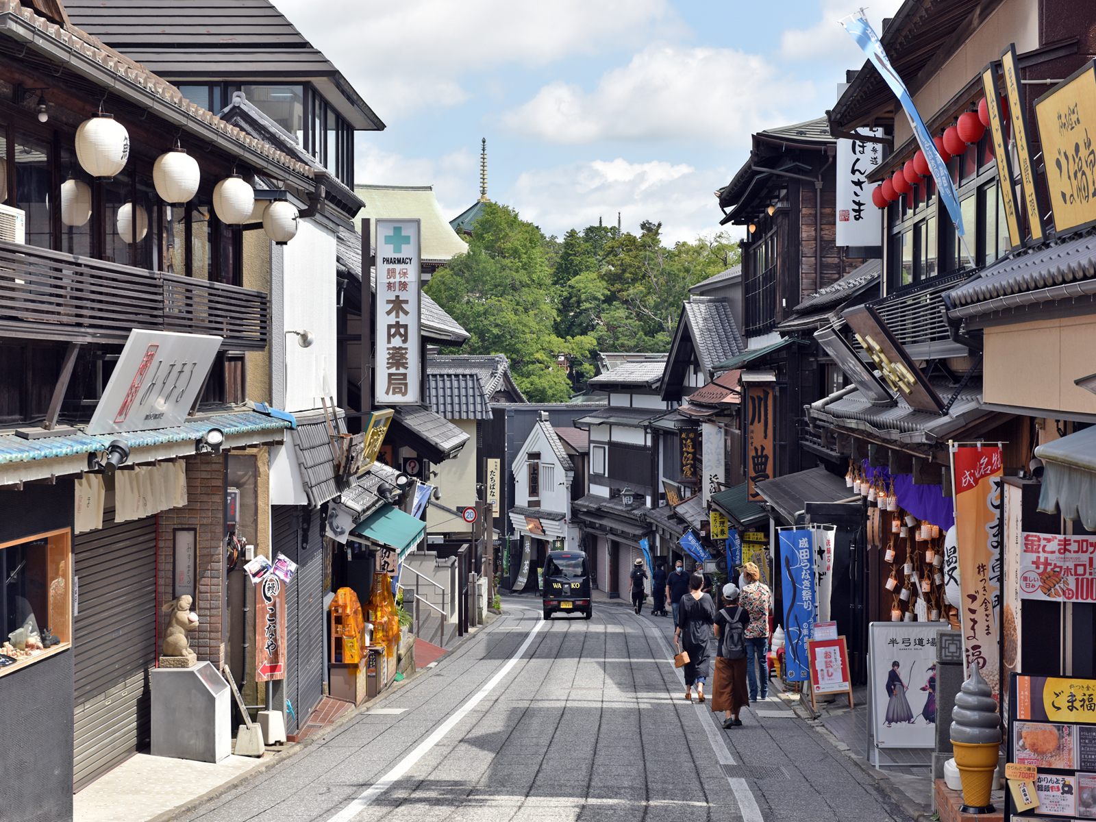 成田駅から総門に至る長い下り坂は、成田山の参道。江戸の昔から成田詣での参拝客で賑わってきたところです。今でも数多くの飲食店や店舗が軒を連ね、成田空港に近いこともあり、たくさんの外国人観光客も参拝者に混じって店先をのぞいています。
