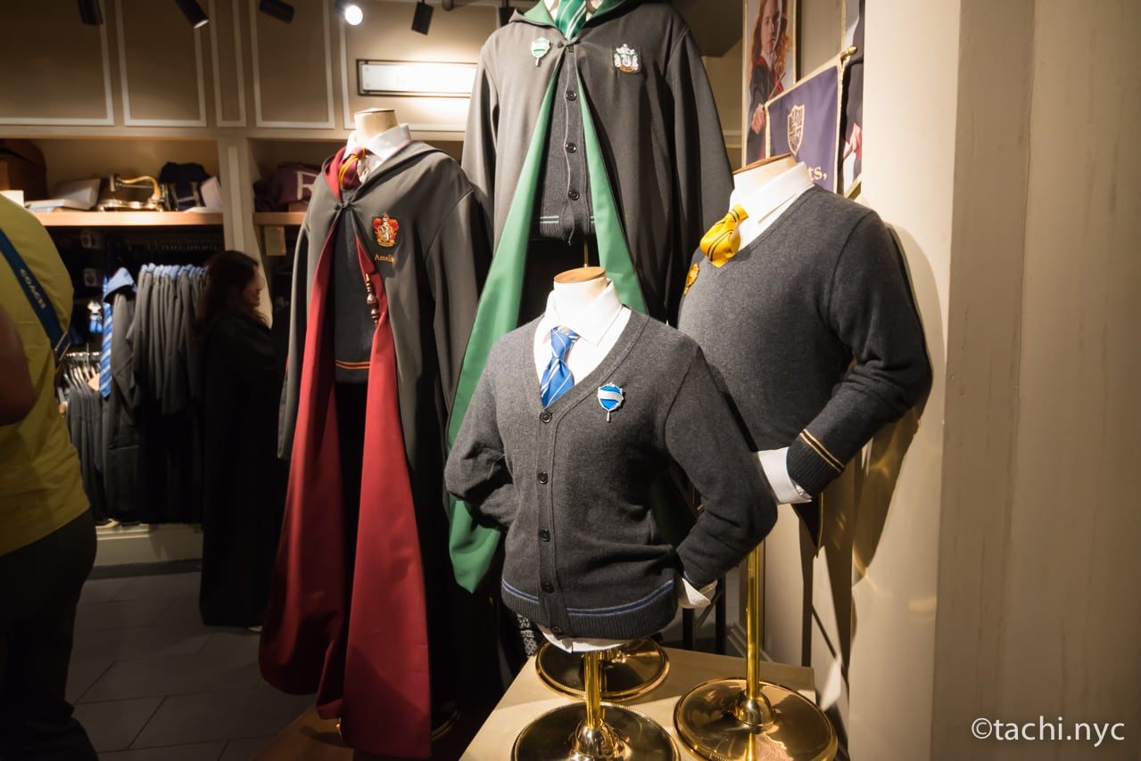 ファッションコーナーには、子供だけでなく大人もつい欲しくなる、各寮ごとに色分けされたセーターや魔法使いのローブも。今年のハロウィーンは、親子そろってこのスタイルで決まり?