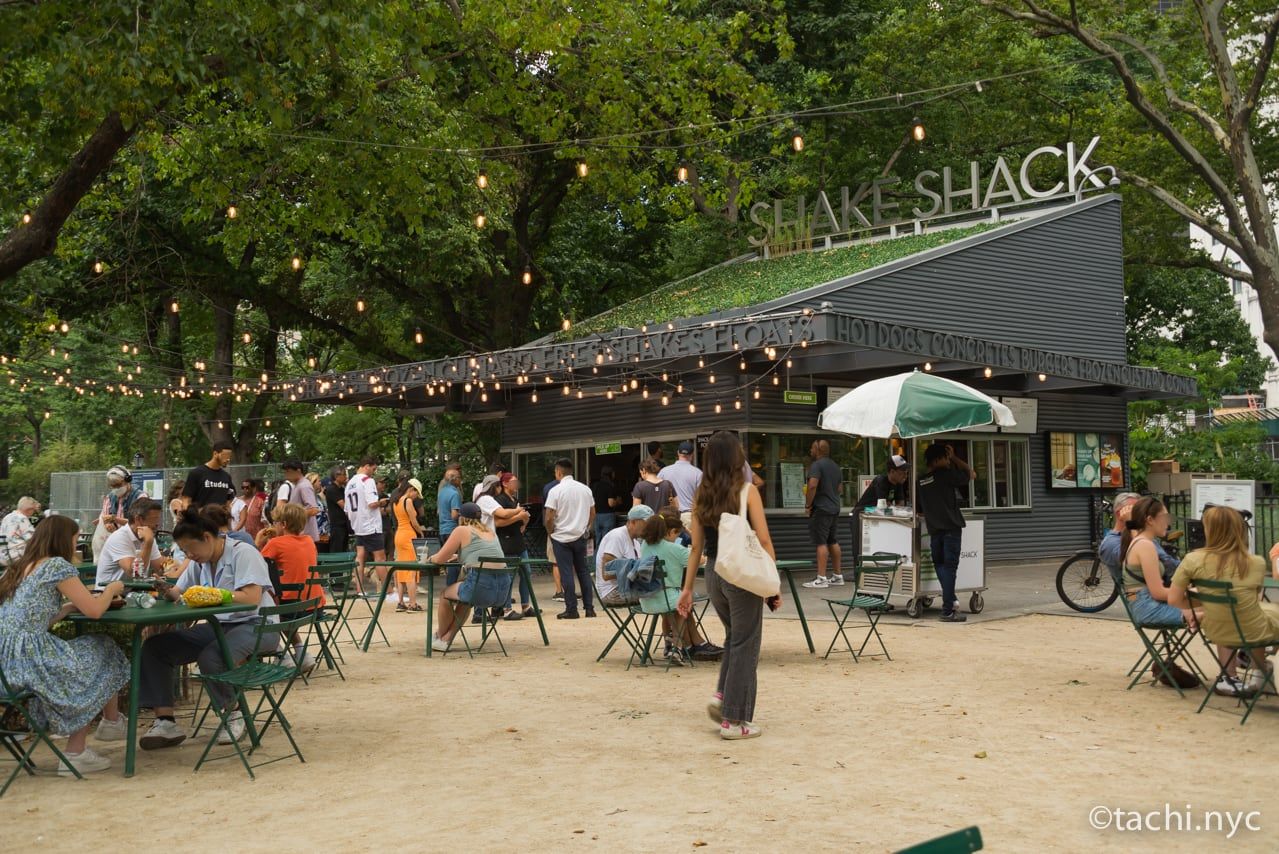 シェイク・シャックは、ニューヨークで予約の取れない高級レストランとして有名な「イレブン・マジソン・パーク」、「ユニオンスクエア・カフェ」、「グラマシー・タバーン」、「ザ・モダン」を成功させたレストランオーナーのダニー・メイヤー氏が、2004年にハンバーガーの店をここマディソンスクエア・パークにオープンしたのが始まりです。当時は「あの高級レストランのオーナーが開いたハンバーガー店の味はいかに?」とニューヨーカーが興味津々で列をなしたものです。