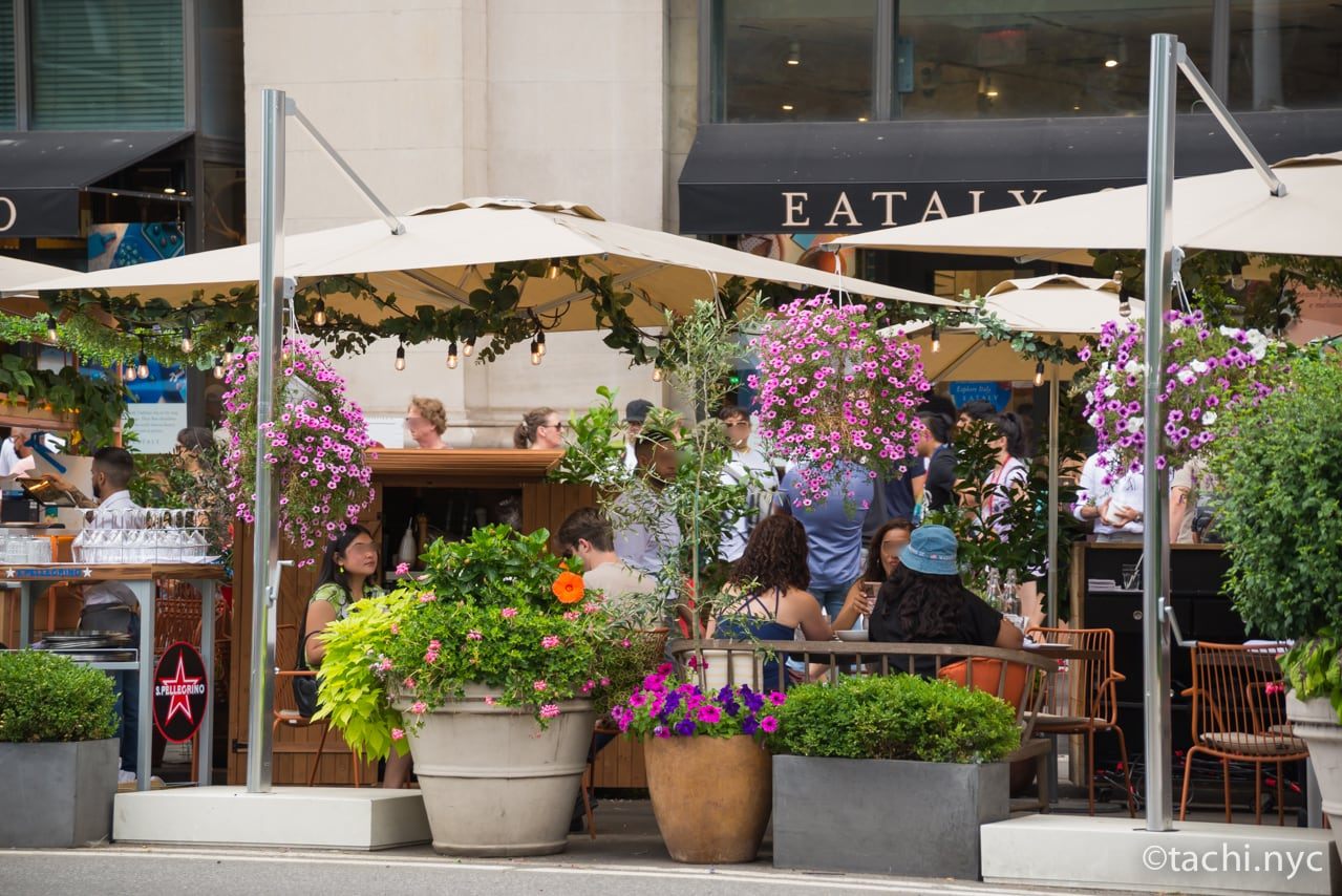 マディソンスクエア・パークの向かいにあるイータリーのアウトドア席「イル・パティオ・ディ・イータリー」も、子供連れにおすすめです。前述のイータリーの店内にも複数のテナントが入っていますが、いわゆるフードコートのような雰囲気で、混み合っていることが多いです。そのため通りの様子を眺めながら食事ができるアウトドア席のほうが、子供には飽きなくて楽しいかもしれません。とても雰囲気がよいので、子供だけでなく大人ももちろん楽しめます。イル・パティオ・ディ・イータリーでは、ブルスケッタやパスタを食べることができます。