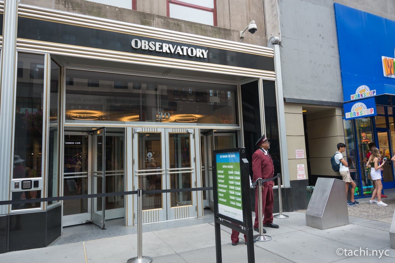 チケットは事前にオンラインで購入しておいたほうがスムーズに入場できますが、当日チケット売り場で購入することもできます。チケット売り場はビルの2階にあります。現在、コロナ渦の影響もあり人出は落ち着いていますが、やはり週末や夏休み、アメリカの連休シーズンには混み合います。また、昼間より夜景の時間帯が人気です。あまり並びたくないという方は、平日の朝~夕方に向かう、事前にチケットを購入しておく、など対策を行うとよいでしょう。