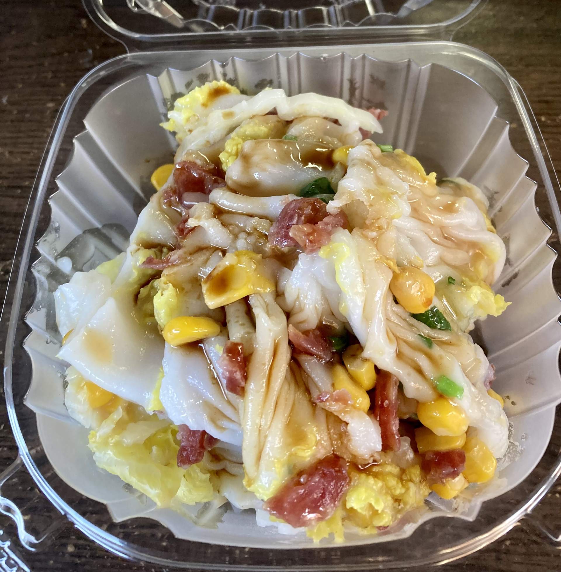 購入したもの:チャイニーズソーセージと野菜入りの腸粉 3ドル(税込)
