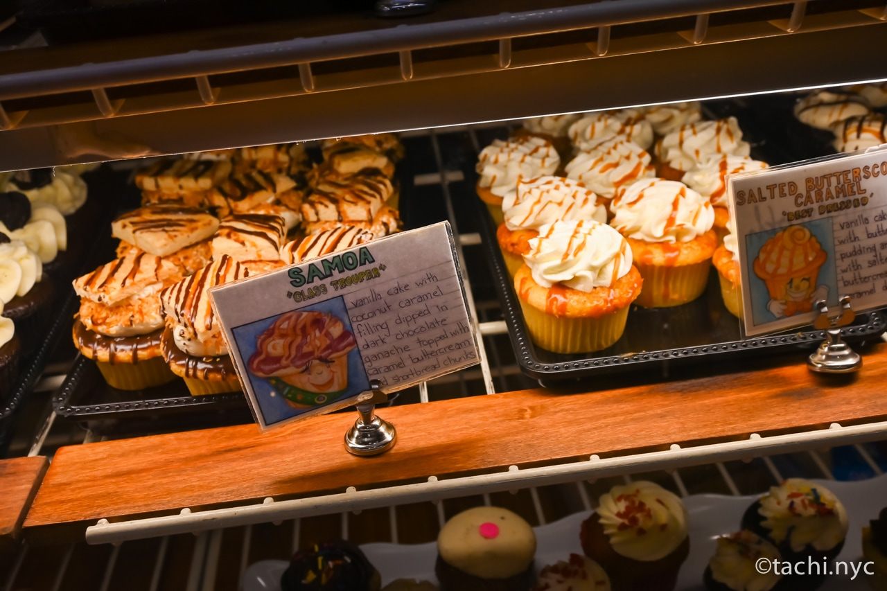 購入したもの:クリームブリュレ カップケーキ 3.75ドル(税別)、塩キャラメルバタースコッチ カップケーキ 3.75ドル(税別)