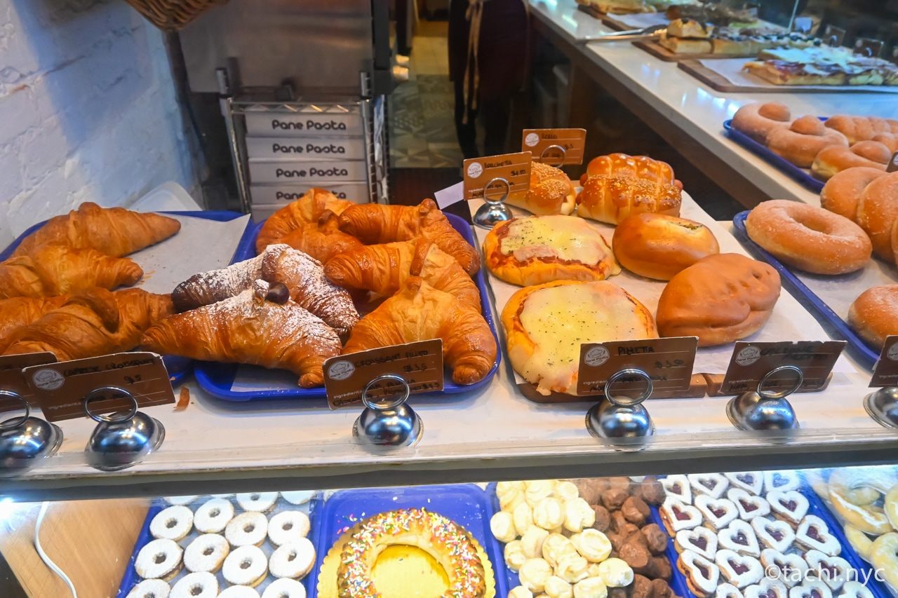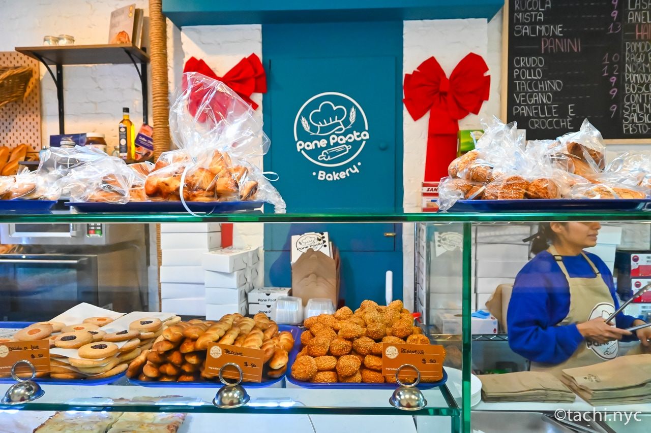 ウエスト・ビレッジに2020年春にオープンした、イタリア・シシリー島系のベーカリー「パネ パスタ」。名前のとおり、パンのほかホームメイドのパスタもあります。こぢんまりとした店内には、多くの種類のパンやクッキーが並び、ほとんどが1個から買えます。価格はマンハッタンのほかのベーカリーに比べて2〜3割程度安い印象です。