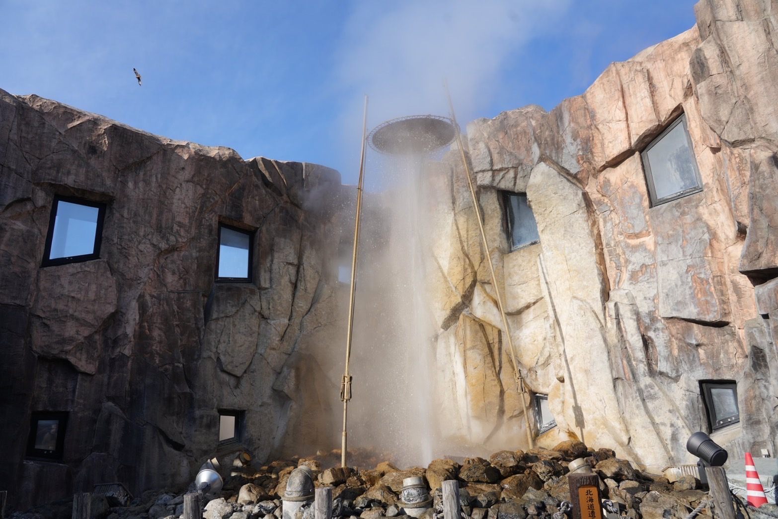 大船遺跡から車で15分ほどのしかべ間歇泉公園は、大地のエネルギーを感じられるスポット。約15分ごとに約100℃の高温の温泉が勢いよく噴き上がります。
