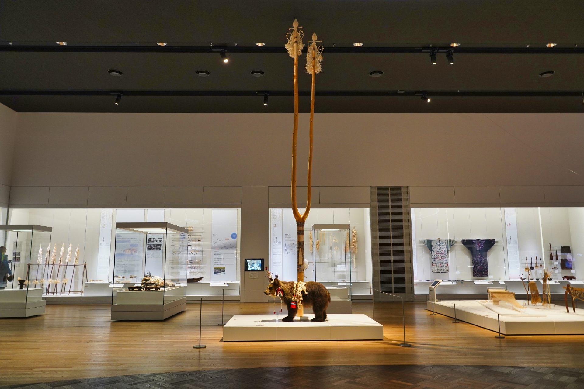 登別温泉から白老(しらおい)のポロト湖畔にあるウポポイ(民族共生象徴空間)へは車で30分ほど。国立アイヌ民族博物館、伝統芸能上演や体験ができる国立民族共生公園、アイヌのコタン(集落)の再現、アイヌ料理を味わえるレストランなども。