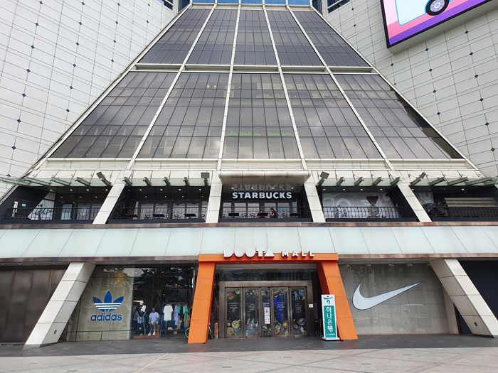 1990年代に入り、ミリオレとともに東大門にいち早くできたドゥータモール。老舗なので店やビル自体も古い?と思われがちですが、コロナ禍でもほかのショッピングモールに比べて店舗がたくさん入っている人気のショッピングモールです。
