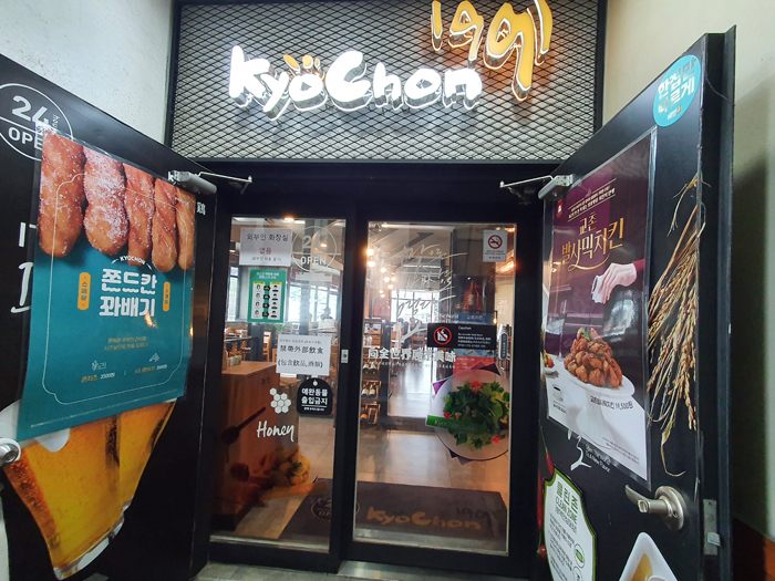 24時間営業なのでいつでも訪れることができ、店内が広くテーブルも多いので行けばほぼ座れそうです。小腹がすいたら、KyoChonChickenで最近人気のキョチョンハニーコンボ(2万ウォン、約2000円)も食べてみてください。