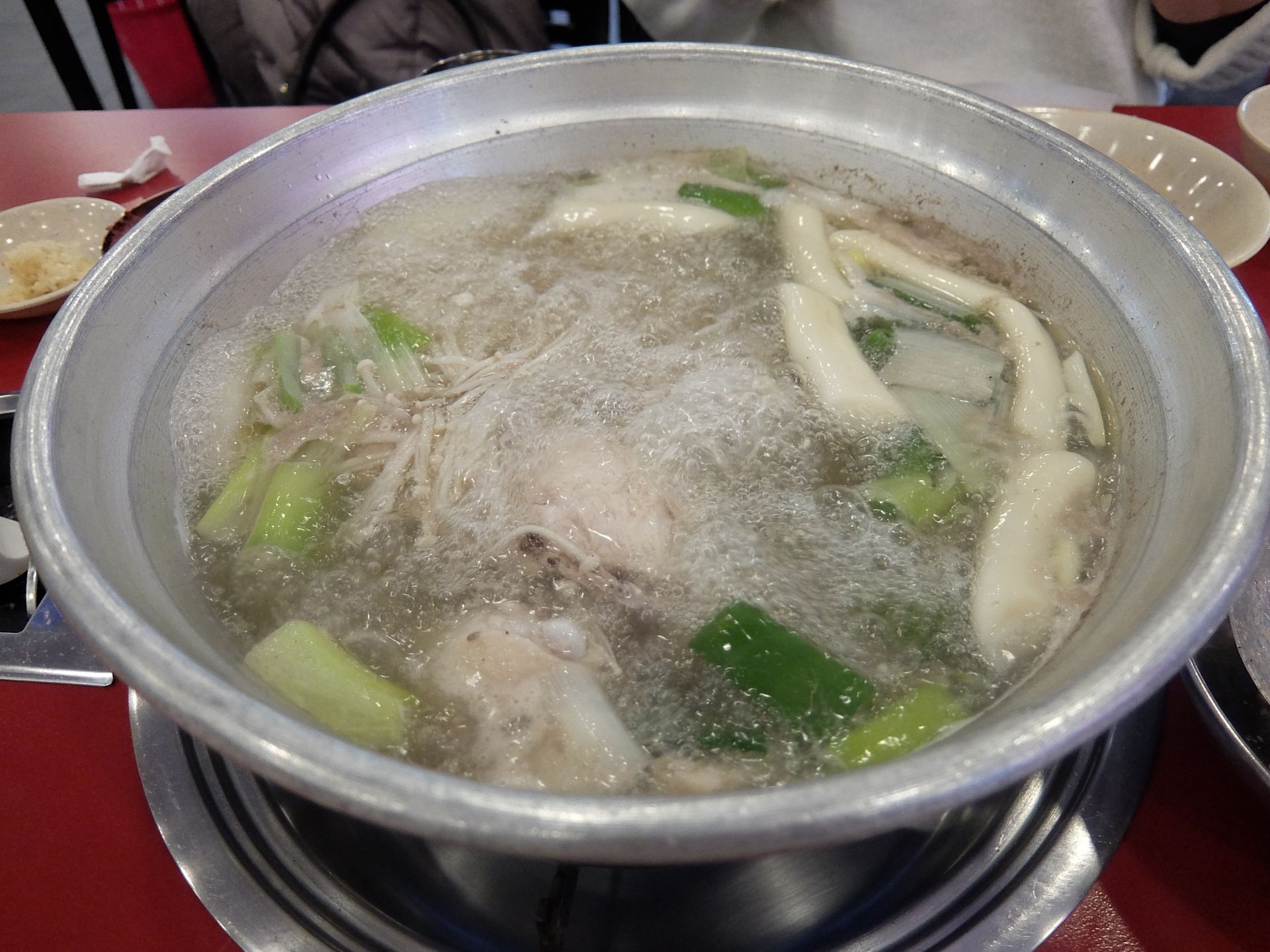 食べ終わったら、カルグクス(칼국수)というきしめんを追加で頼み、鶏のだしを利用して、麺を煮込みます。煮込んだあとのカルグクスはしっかり味が染み込んでいて、満足度が高いです。