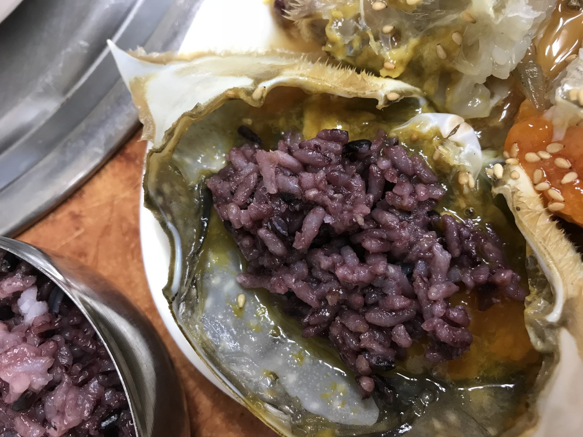 甲羅にご飯と蟹味噌を混ぜてビビンパとして食べるのがポイントです。あまりにもおいしく食べ続けてしまうので、韓国ではご飯泥棒と呼ばれ、親しまれている料理です。