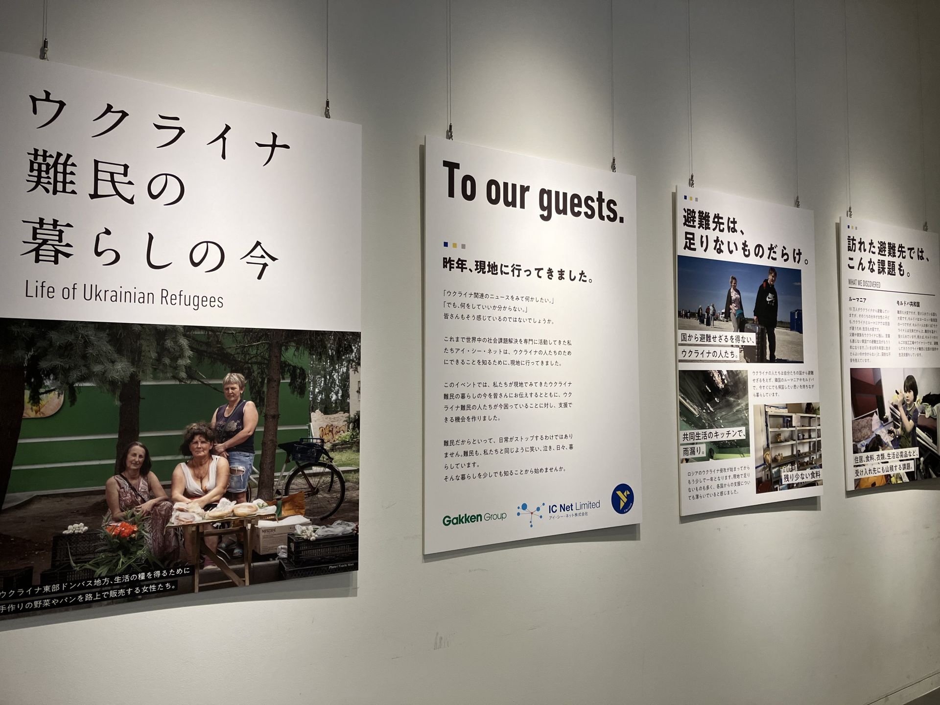 アイ・シー・ネット株式会社が隣国モルドバとルーマニアで視てきた、ウクライナ難民の暮らしの状況や難民の子どもたちの教育環境について、最新状況を伝えるパネルとUNHCRが現場で撮影した写真が展示されています。また、ドキュメンタリー写真家である森 佑一氏がウクライナ国内で撮影した写真を、インタビュー内容と合わせて紹介しています。