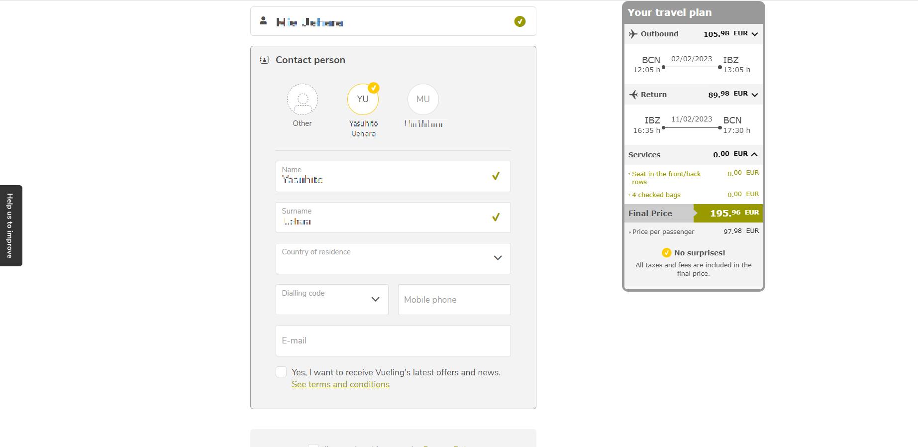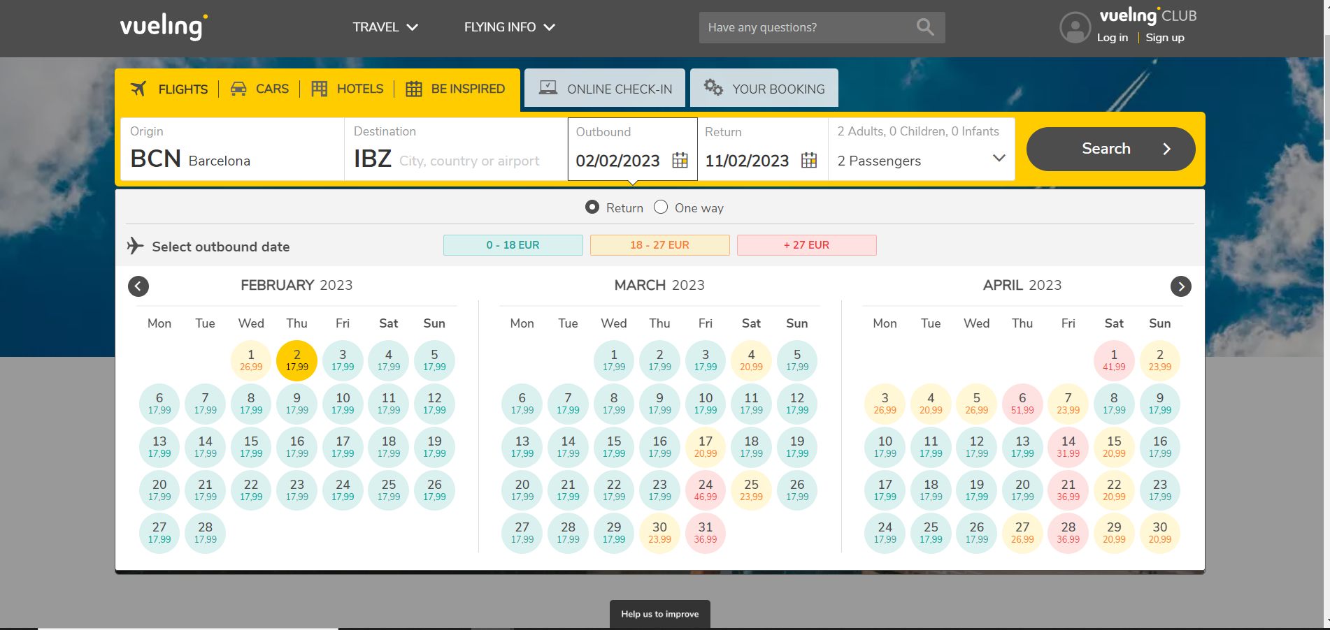 ここでは、スペインのvuelingのサイトでチケットを手配する手順をバルセロナ-イビザ島を例にとって解説します。