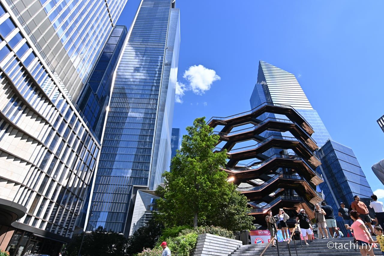 ハドソンヤーズは、元々はMTA(ニューヨーク州都市交通局)の地下鉄車両置き場だった場所を再開発したもので、250億ドル(約3兆6184億円)を投じた、ロックフェラー・センター以来マンハッタン過去最大の都市再開発プロジェクト。マンハッタンの10番街から12番街の間、30丁目から34丁目にかけて位置する28エーカー(約0.11平方km)という開発敷地には、5棟のオフィスビル、ショッピングモールや飲食店の商業施設、高層分譲および賃貸住宅、高級ホテルほか、旅行客が楽しめる観光施設が充実しています。
