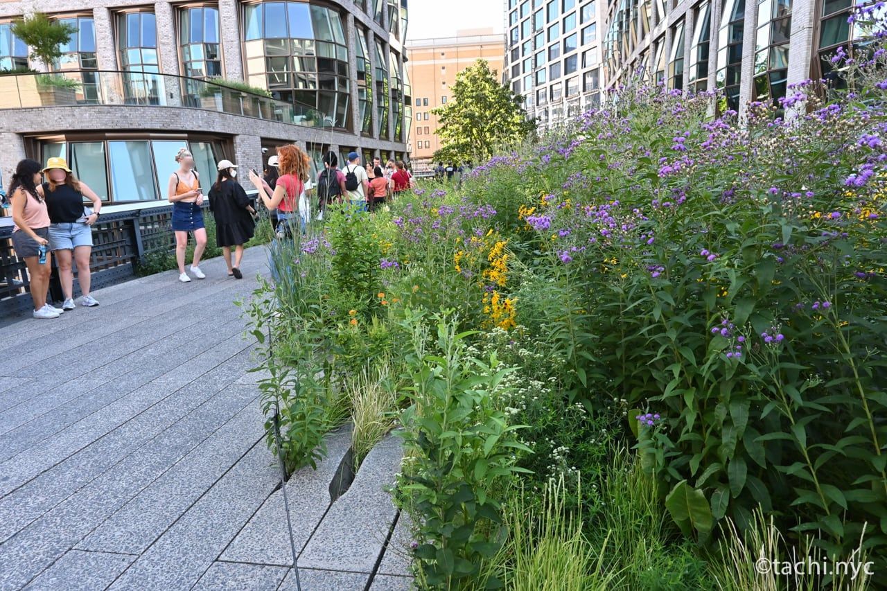 ハイラインの歩道には15万本以上の植物や樹木が植えられ、季節ごとに異なる自然に寄り添うと心が休まります。