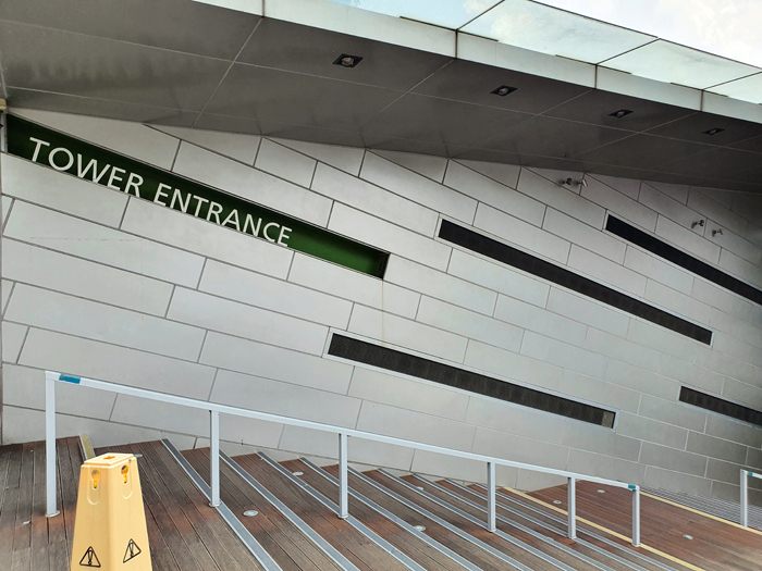 タワー正面の左手にある「タワーエントランス」と書かれた入口を進むと、展望台に上がる入口があります。