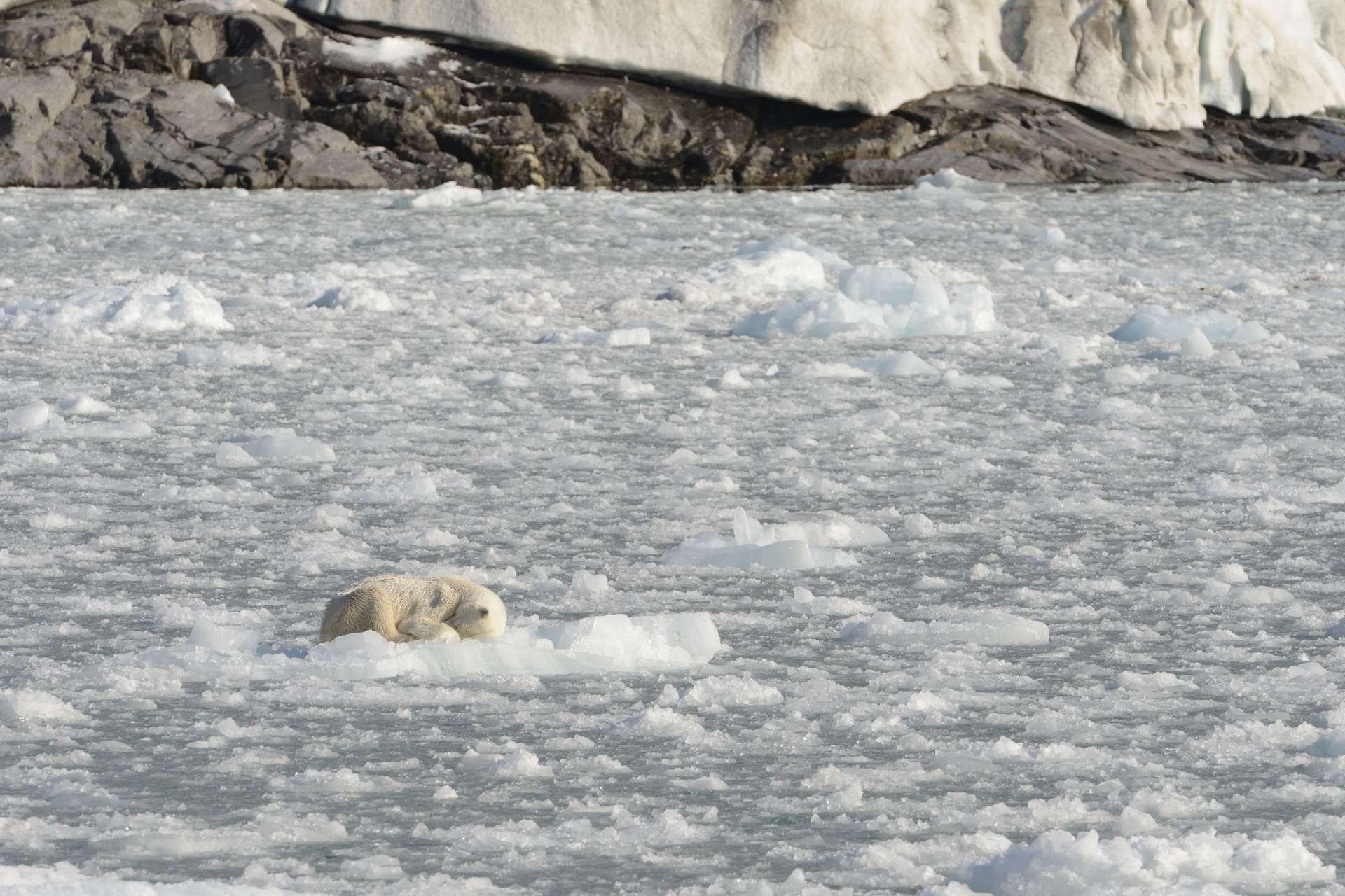 気候変動による海氷の消滅はホッキョクグマの狩場を奪うだけでなく、アザラシたちの子育て場所も奪っています。主食のアザラシが減少すれば狩りはますます難しくなります。また海洋汚染の影響で、食物連鎖の頂点にいるホッキョクグマが体内に有害物質を蓄え、寿命が短くなっているとも報告されています。生活スタイルを変えたり、狩りの方法や獲物を変えたりと、ホッキョクグマは環境に順応しようとしていますが、その将来は楽観的なものではないといえるでしょう。