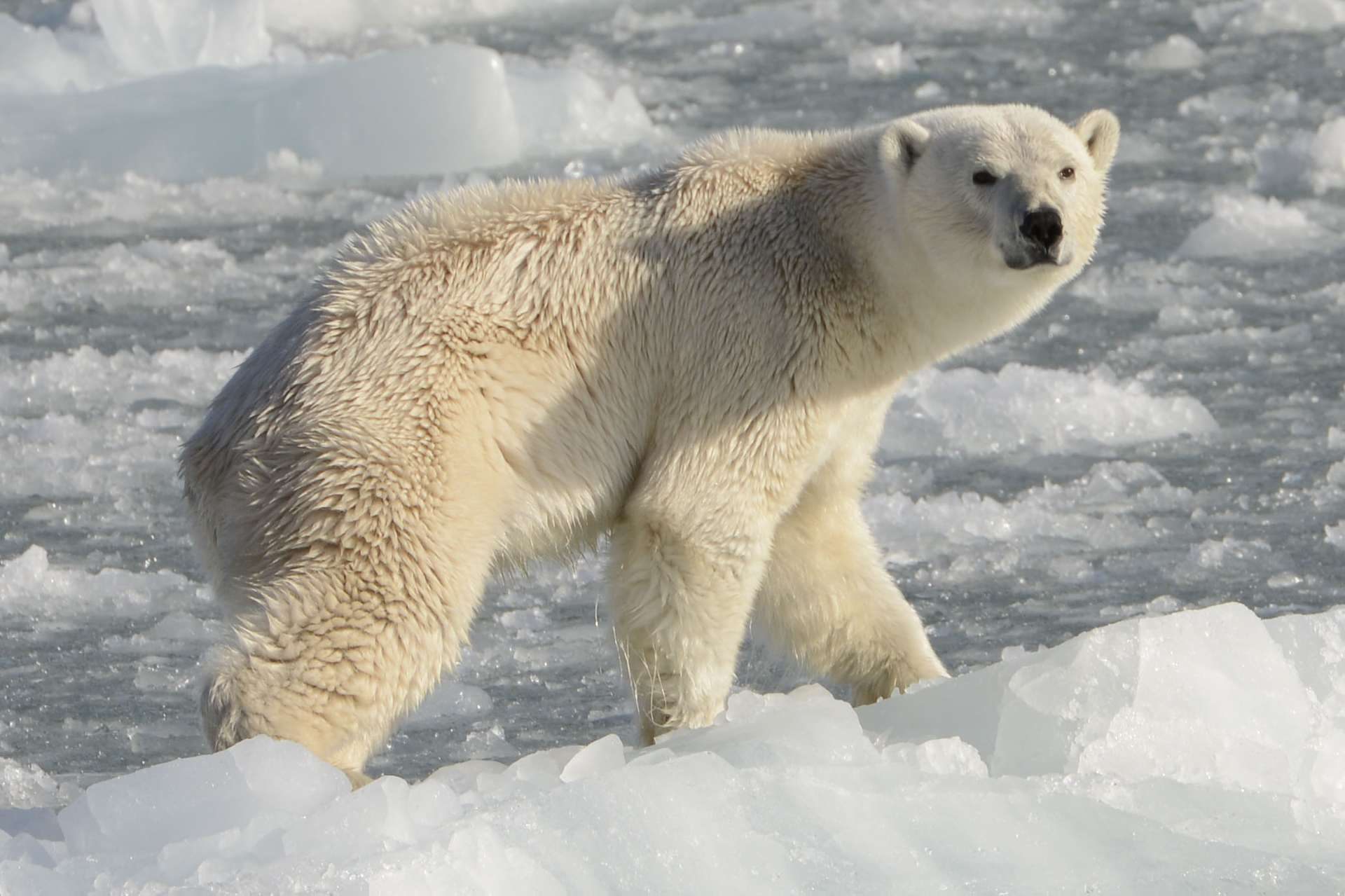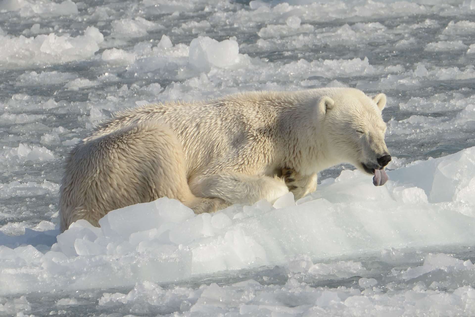 現在の生息数は2万数千頭と言われています。統計数字上では激減しておらず、ホッキョクグマは安泰だという説を唱える人もいますが、エサ不足から体格が小さくなっており、以前は捕食しなかったスヴァールバル・トナカイを襲う個体が現れたり、ロシアの村を定期的に訪れてゴミをあさったりする個体が現れています。