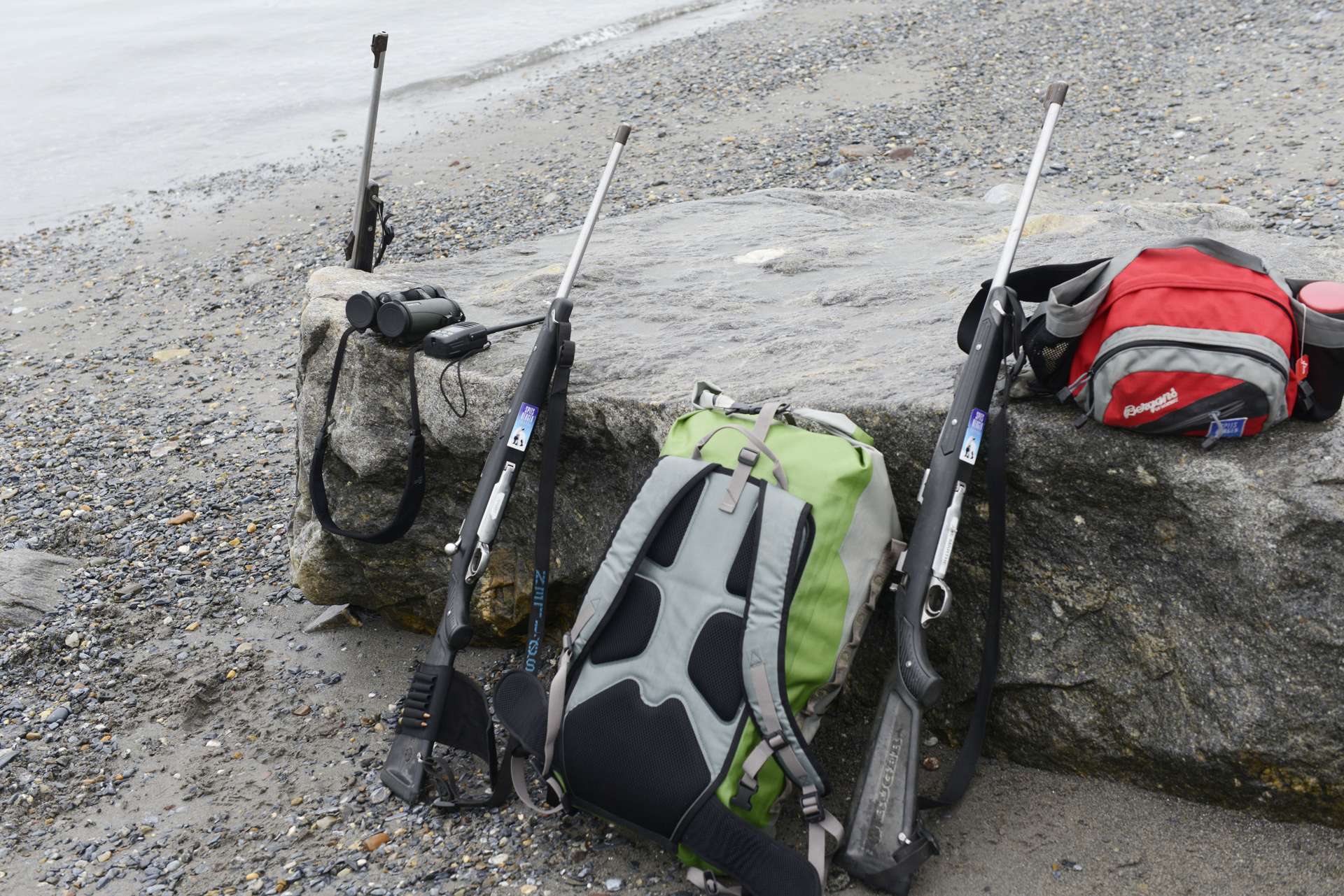 別記事のロングヤービーエン訪問時の注意点に書きましたが、スヴァールバル諸島では銃を携帯するか、銃を携帯した人とともに行動する必要があります。またホッキョクグマの接近を知らせるための犬を連れていくことも有効な対策です。