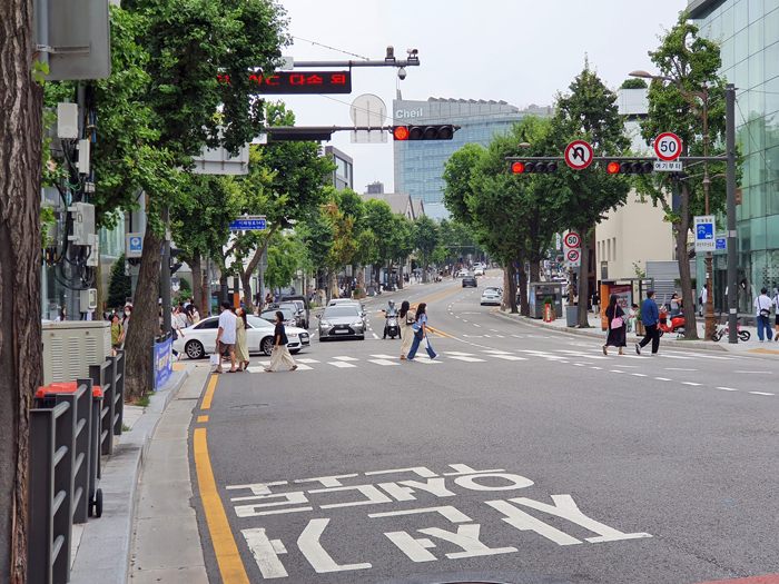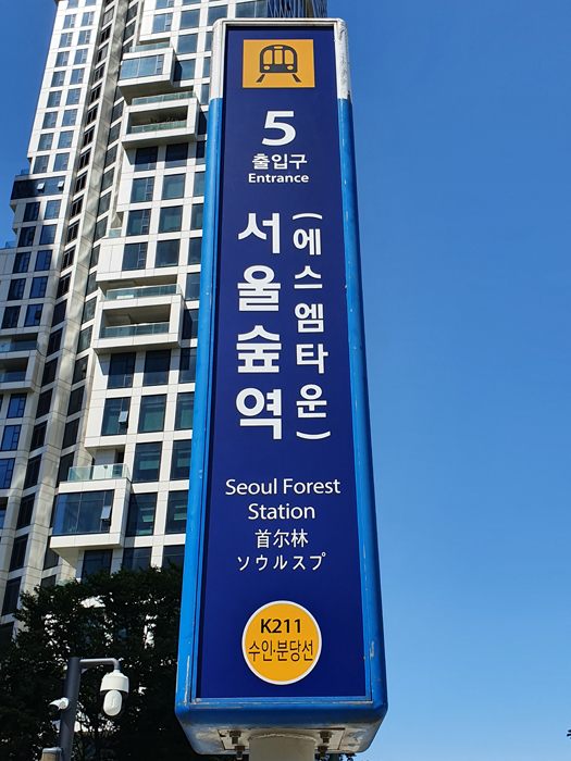 SMエンターテインメントの新社屋が入る高層ビルをはじめ、ソウルの森周辺には超高層複合アパートが建っており、そこに住む芸能人やセレブの生活拠点でもあるため、周囲には洗練された飲食店やショップがたくさんあります。駅の横に広がるソウルの森公園は、散歩や運動ができる開放的な空間で、地元の人々もよく利用しています。また、公園の横の通りにはブランチやお茶が楽しめるおしゃれなレストランやカフェが並んでいるので、疲れたり小腹がすいたりしても安心です。