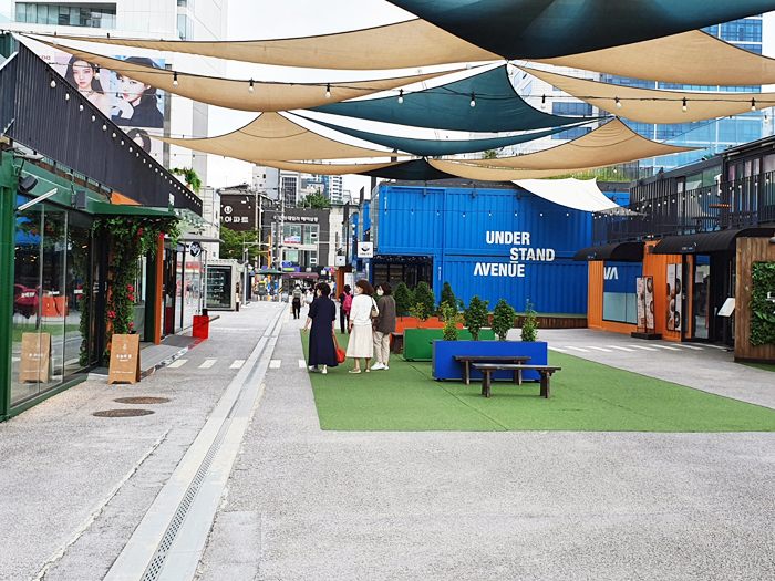 またソウルの森駅を出たすぐ横には、「アンダースタンドアベニュー」という116個のコンテナをつなげてつくられた複合文化空間があり、いろいろなレストランやショップが集まっています。