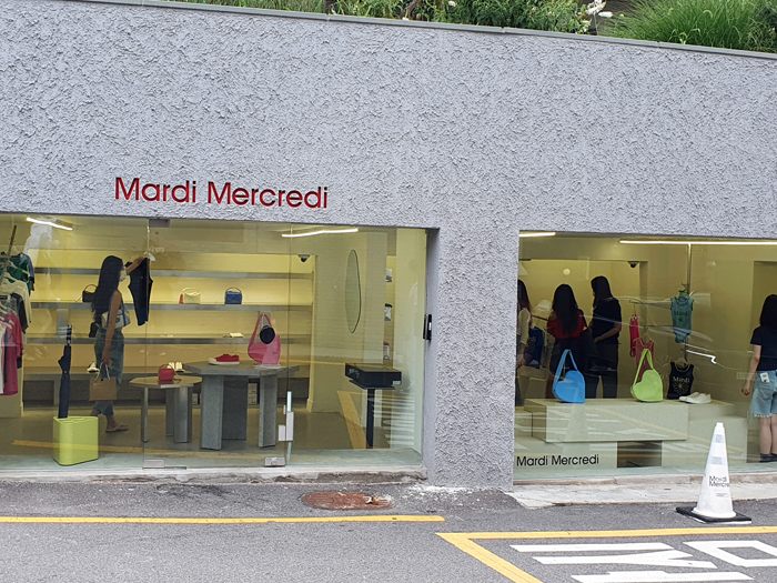 K-POPアイドルや韓国女優などの芸能人ご用達のブランド「emis(イミス)」や「mardi mercredi(マルディ・メクルディ)」などのショップでは、若い女性たちが入れ代わり店内に入り真剣な表情でショッピングしています。