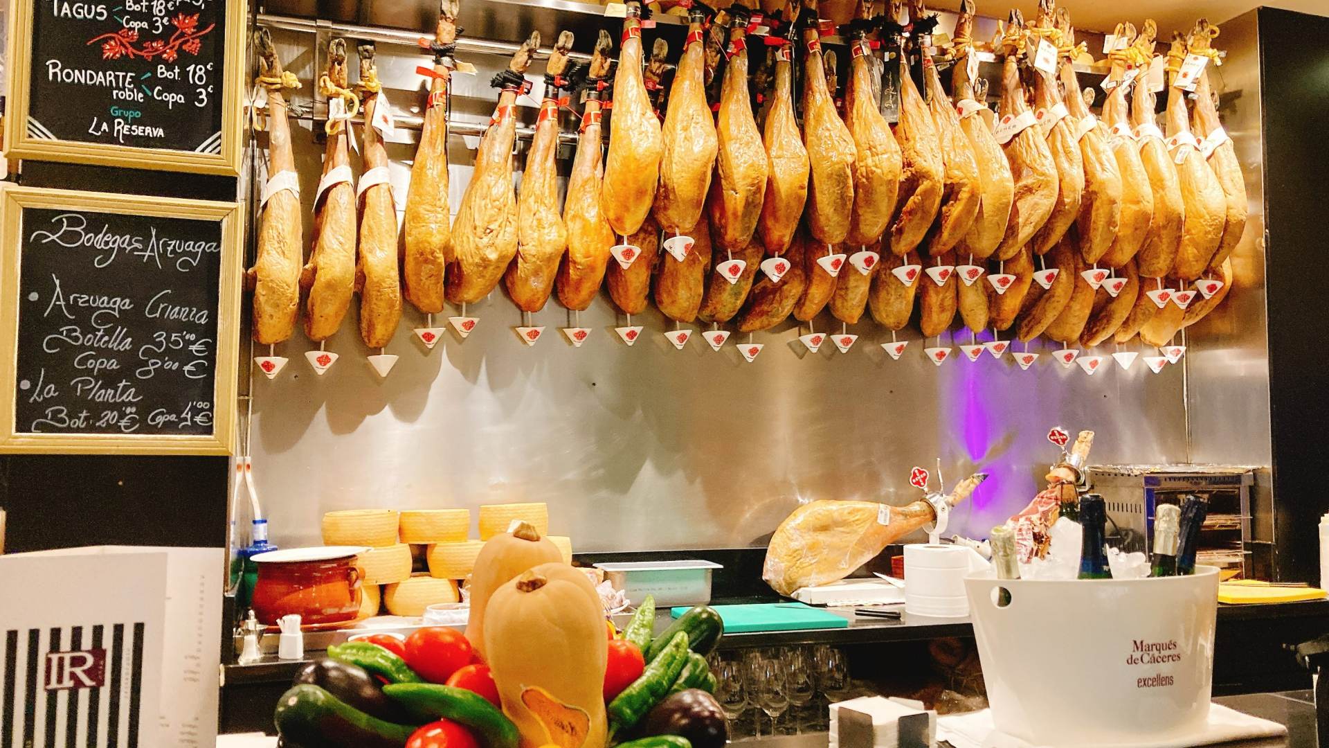 どんぐりを食べて育った黒豚から作られる、最高級品のハモン・イベリコ・ベジョータも取り扱っており、スペイン産ビールやワインとのマリアージュを楽しめます。