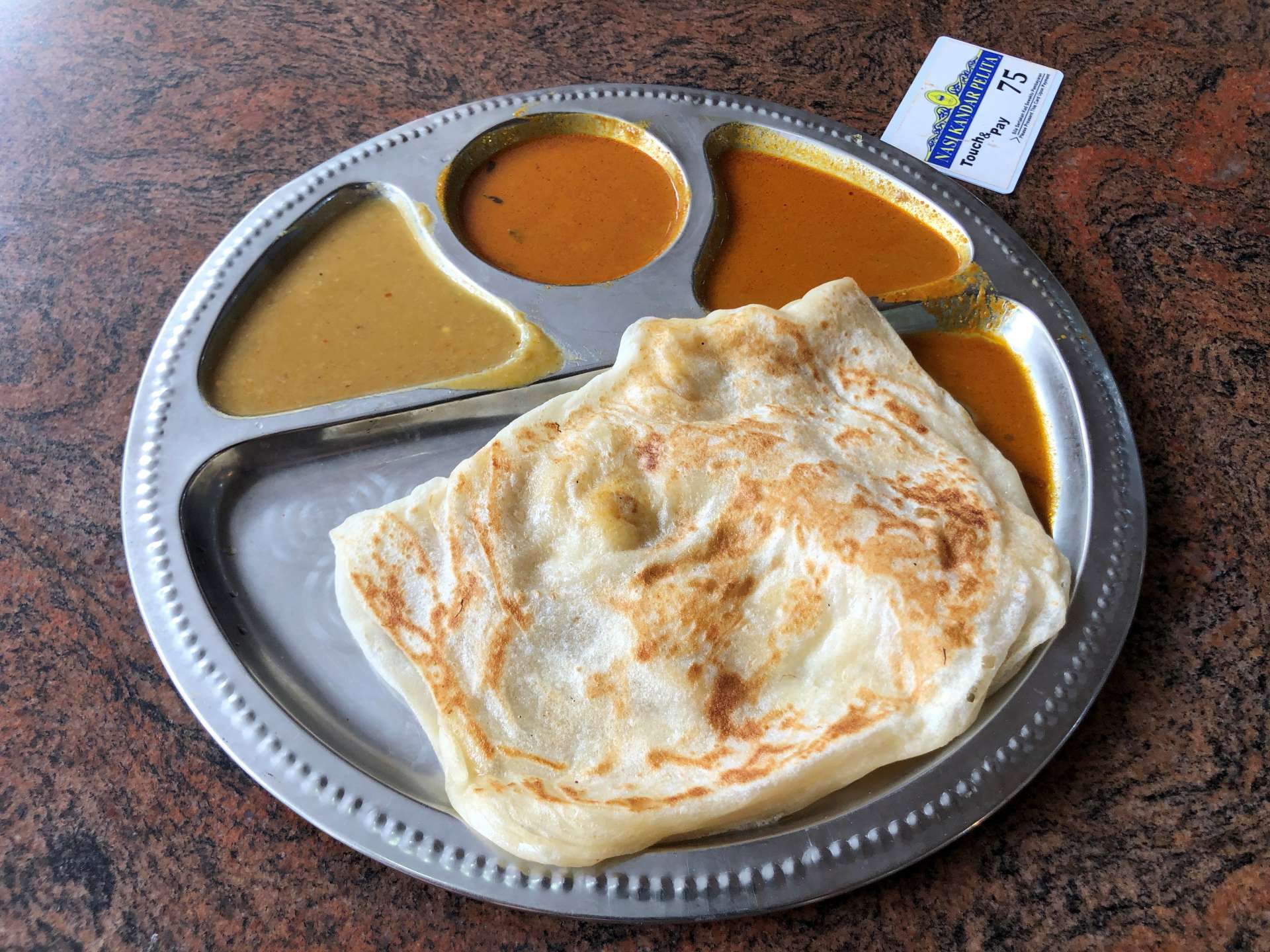 生地の仕込みから焼くところまで、すべて店内で行っているロティチャナイは、絶対に外せない一皿。いつもは具無しのプレーンを頼むのですが、3年ぶりなので奮発してバナナ入りを注文。