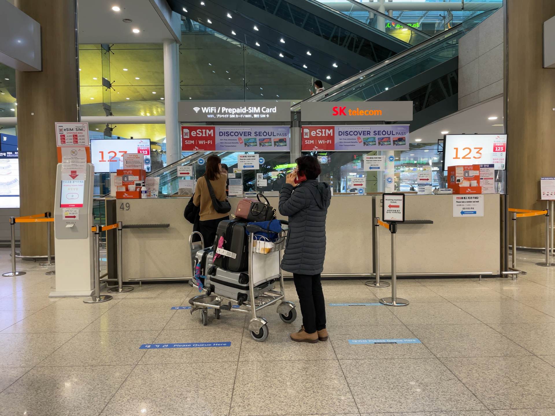 うっかり日本でWi-Fiルーターをレンタルするのを忘れてしまった場合や、準備していたSIMカードが使えなかった場合などは、韓国の空港で当日レンタルすることも可能です。また、できるだけ荷物を減らしたい、費用を抑えたいという方も現地でレンタルするといいでしょう。仁川国際空港の1階には韓国の通信会社KT(korea Telecom)、LG U⁺、SKT(SK telecom)、ワイファイベントウ(WiFi Dosirak)などのWi-Fiレンタルショップが並んでいます。