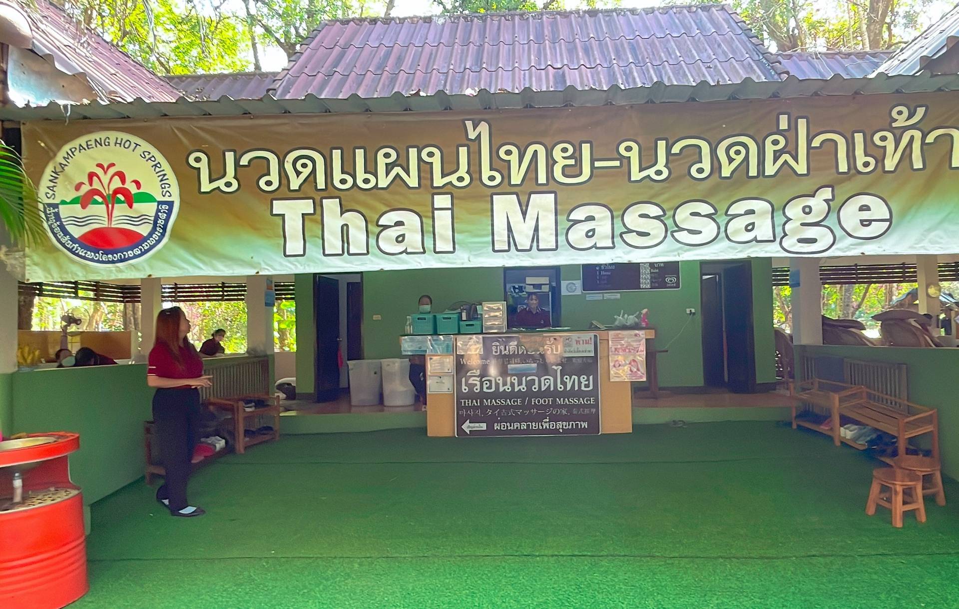 入浴のあとはマッサージがおすすめ。本格的なマッサージが、30分130バーツ=約520円で受けられます。温泉で温められた身体にマッサージ……は最高のリラクセーションです。