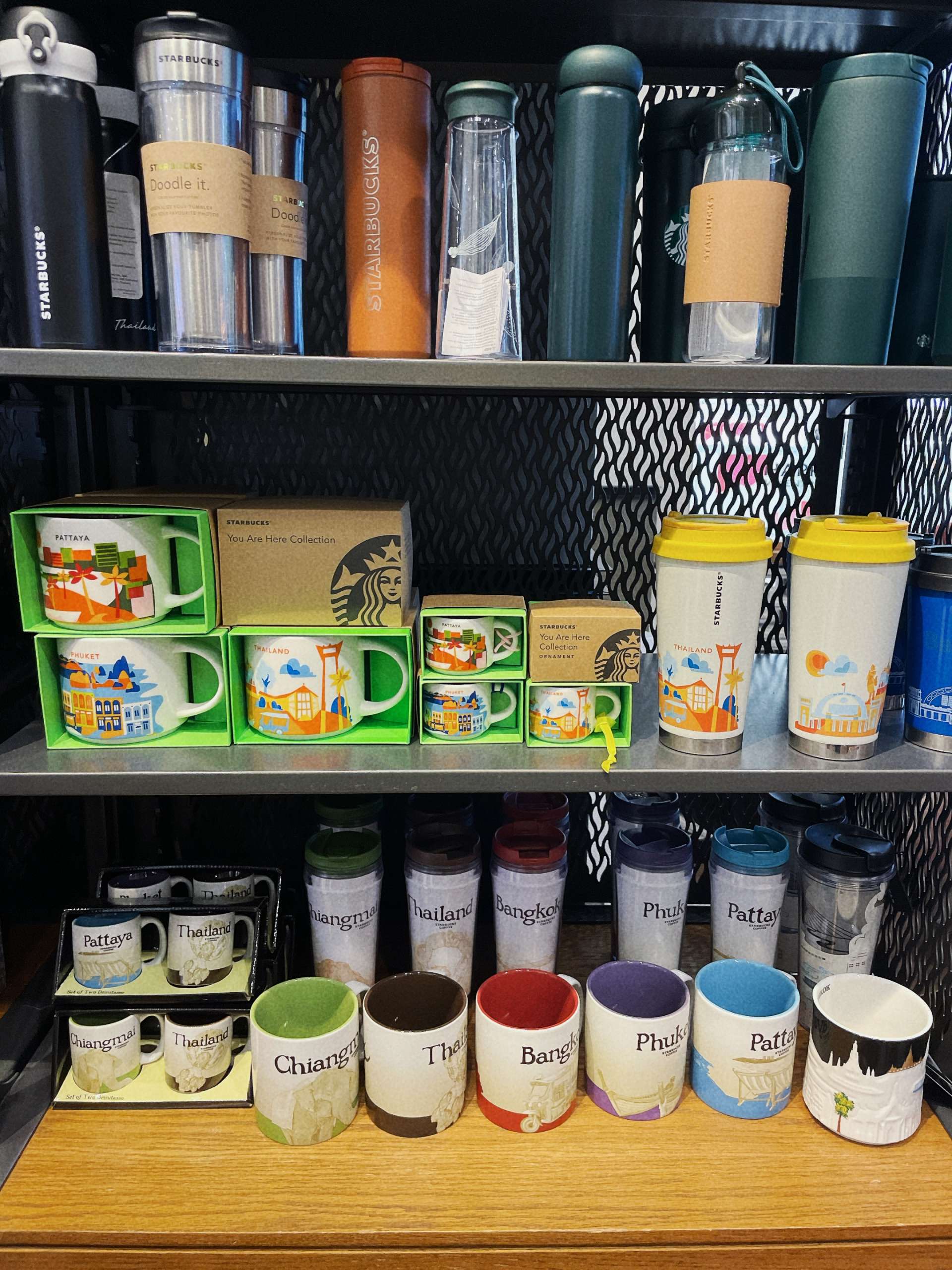 ご当地の文化や景観に合わせたスターバックス巡りを旅のテーマにする人がいるほど、旅人に人気のスターバックス。タイでは上陸25周年だそうで、店内にはアニバーサリーシリーズのコレクションがありました(店舗によっては品切れのところも)。タイ限定コーヒー豆のMUAN JAI BRENDはほかでは味わえない味わい。コーヒー好きの方はぜひ淹れたてを試してみて。豆をおみやげにするのも喜ばれそう!
