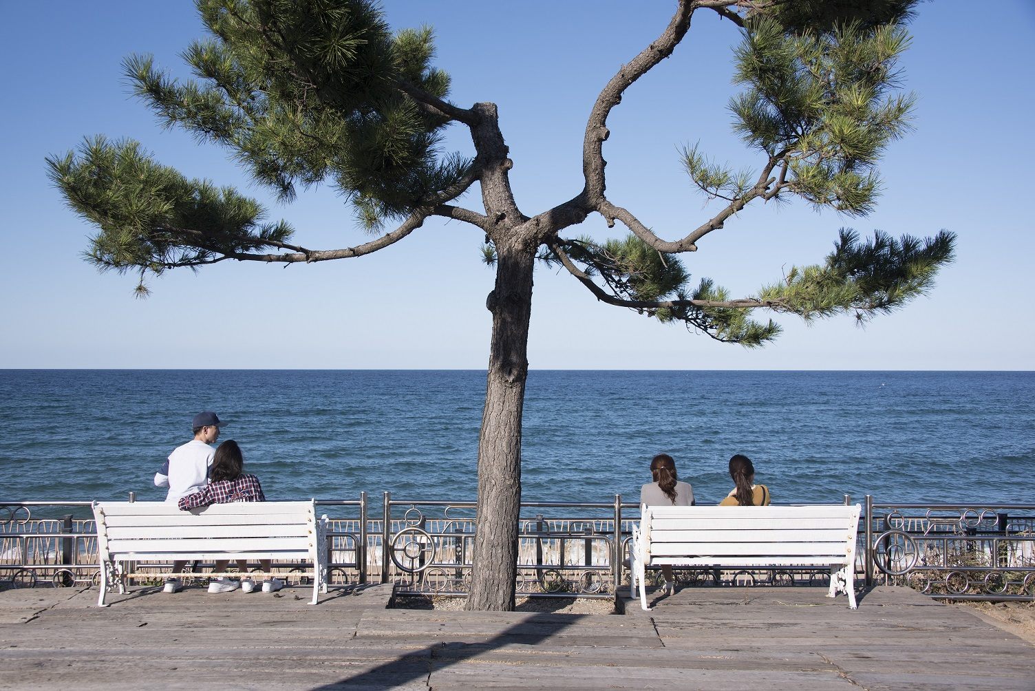 最後は韓国北東部に位置する江陵。2018年の平昌オリンピックを契機に高速列車KTXが開通し、ソウルから日帰りできるようになりました。江陵で外せない見どころは、世界で最も海に近い駅として知られる正東津駅。大ヒットドラマ『砂時計』の舞台として知られるようになって以来、全国からひっきりなしに観光客が訪れます。韓国で初めてコーヒー豆の栽培に成功した町としても知られ、安木海岸カフェ通りには20軒以上のカフェが立ち並び、海岸を眺めながらコーヒーを楽しめます。