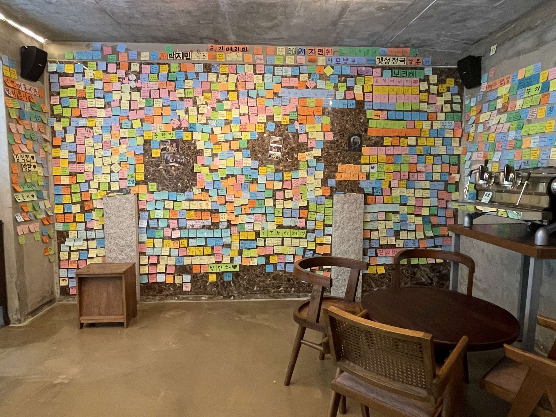 ARMYならカフェ·ヒュガはマスト。BTSが以前住んでいた宿舎が一軒家カフェに生まれ変わって営業しています。リビングの壁やエアコンの一部は7人が暮らしていた当時のまま!