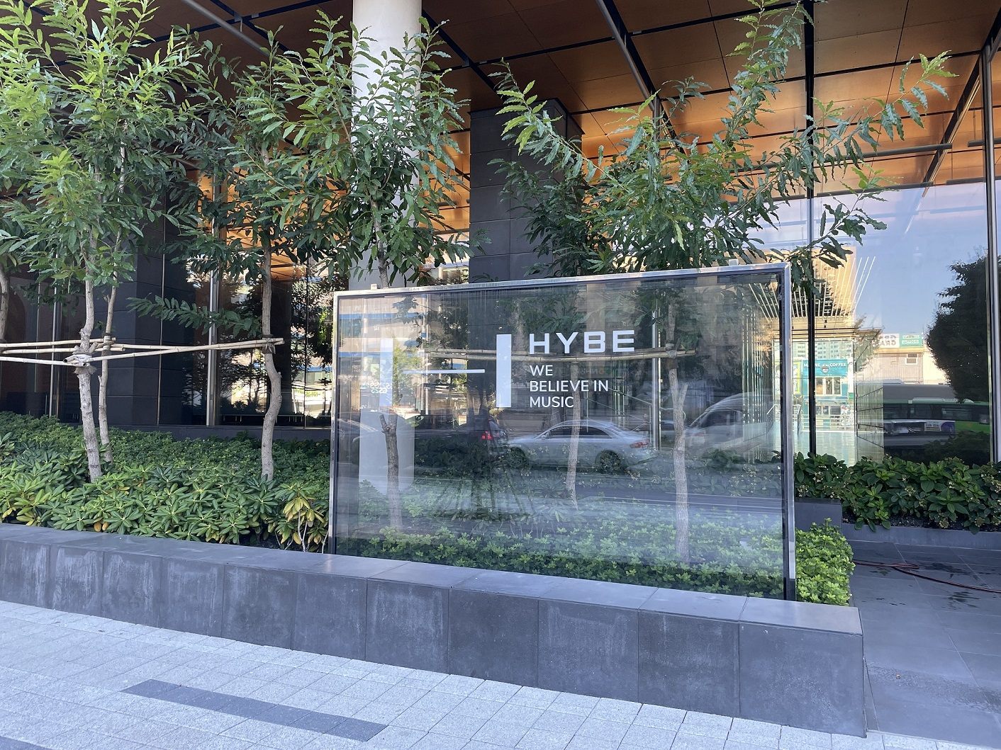 まずはHYBE本社へ。記念撮影をしたら、本社ビル裏手に並ぶカフェをチェック。数軒あるカフェでは、常にHYBE所属アーティストのイベントを行っています。特に、推しのセンイルイベント中なら満足度1000倍! カップホルダーも忘れずゲットしましょう。