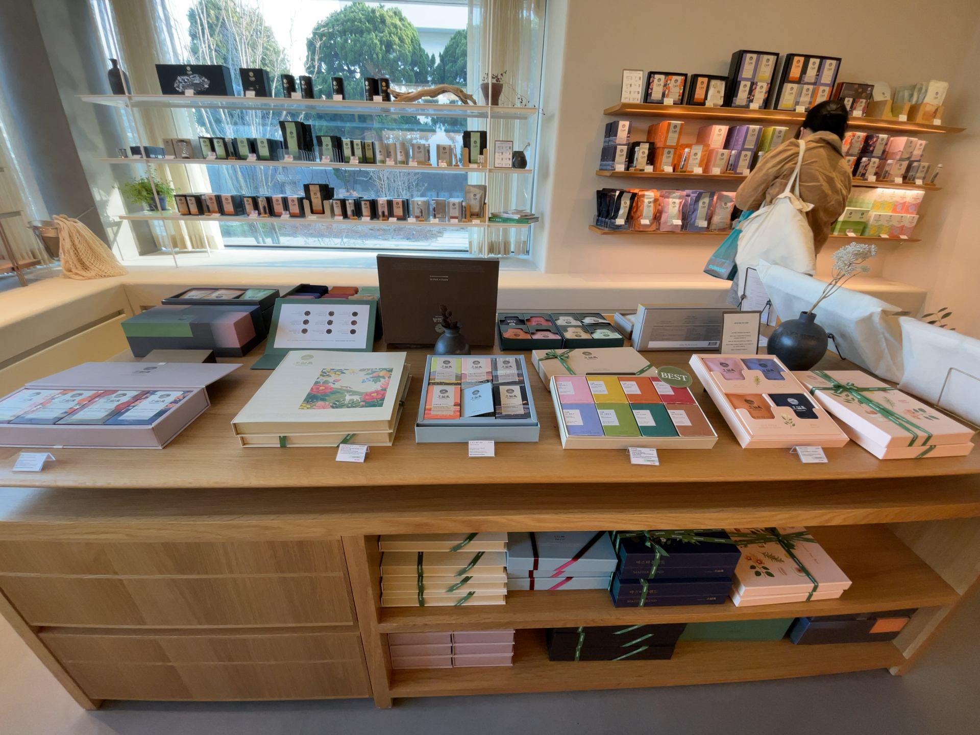 1階にはショップがあり、おしゃれなパッケージのお茶やグッズが多く販売され、おみやげとして人気です。好みのお茶を提案してくれるティーマスターがいるので、相談しながら選ぶことができます。