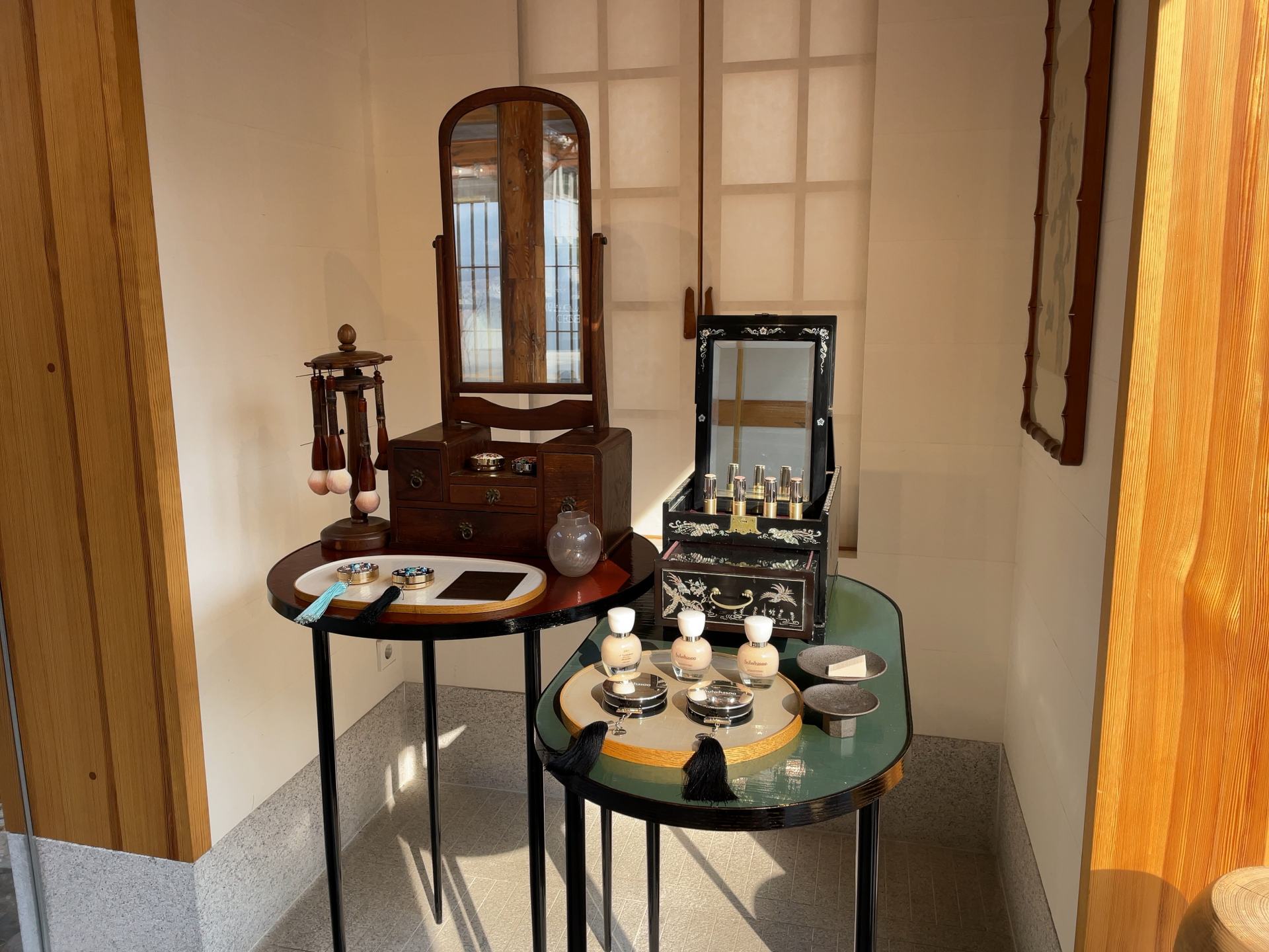 高級感のある化粧品が韓国インテリアに溶け込み、見ているだけで落ち着く空間です。化粧品が展示品のように陳列され、まるで美術館のような造りになっています。