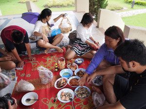 待つこと10分。温泉たまごの出来上がりです♪温泉たまごとみんなで持ち寄ったタイ料理のピクニックをしました。